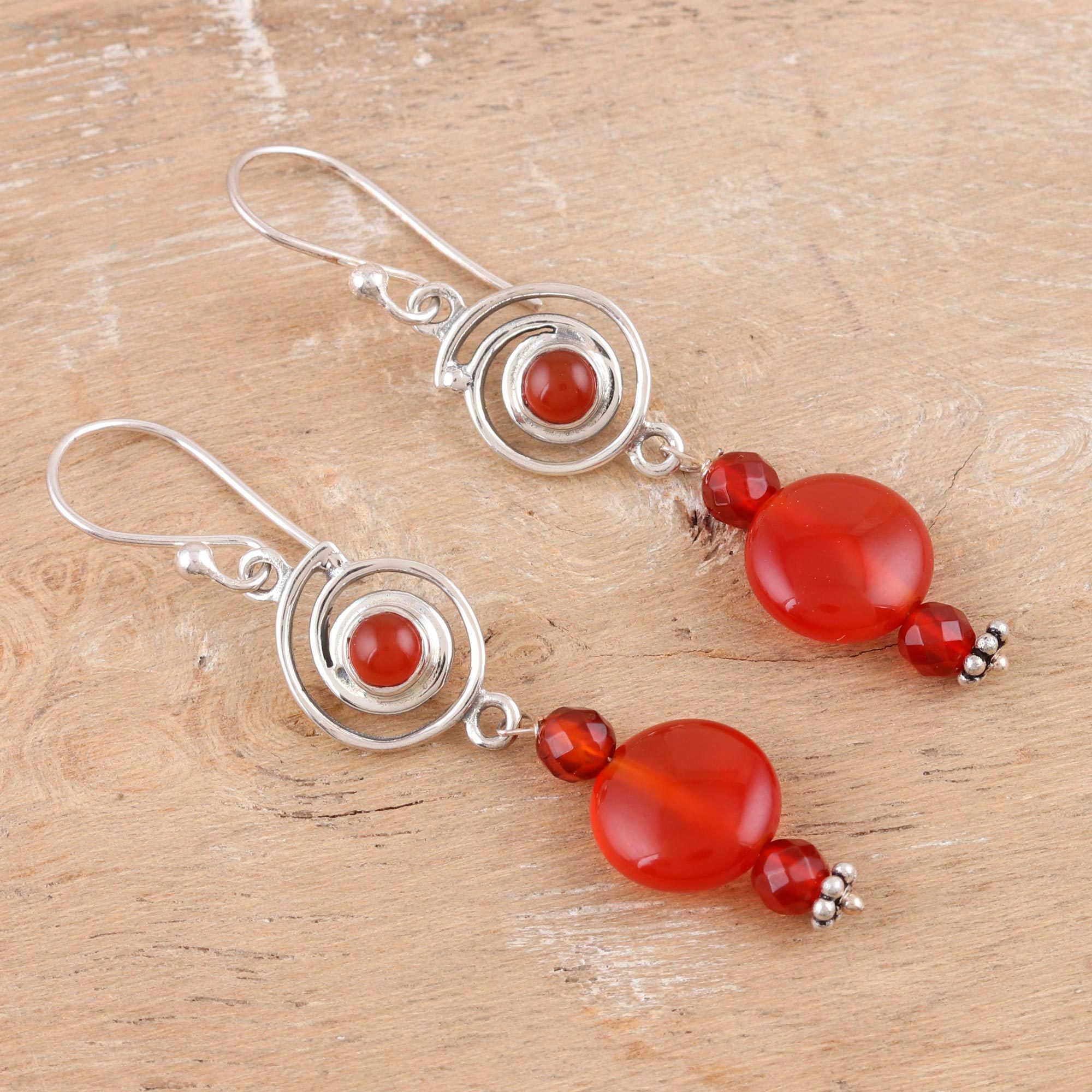 Carnelian and Sterling Silver Dangle Earrings, 'Close Relatives'
