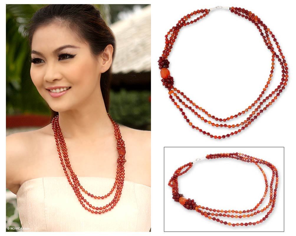 Carnelian Beaded Necklace from Thailand, 'Sun Radiance'