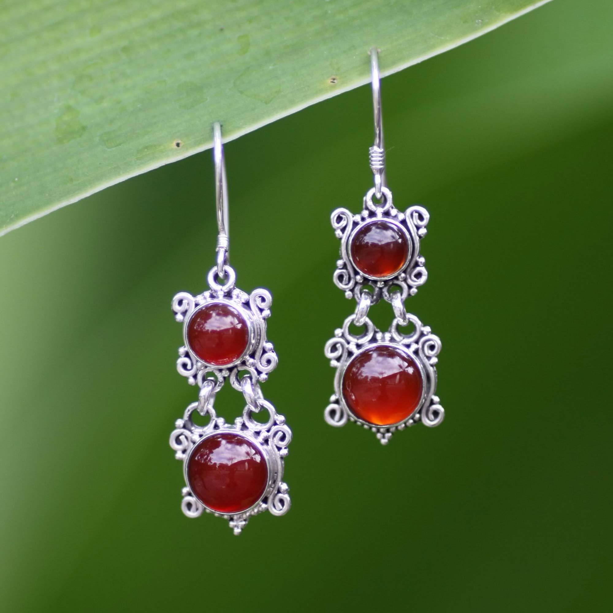 Ornate settings embrace glowing carnelian, which represents July´s birthstone. Thoroughly contemporary, the design has its roots in Balinese tradition. Wayan Asmana presents these exquisite sterling silver earrings.