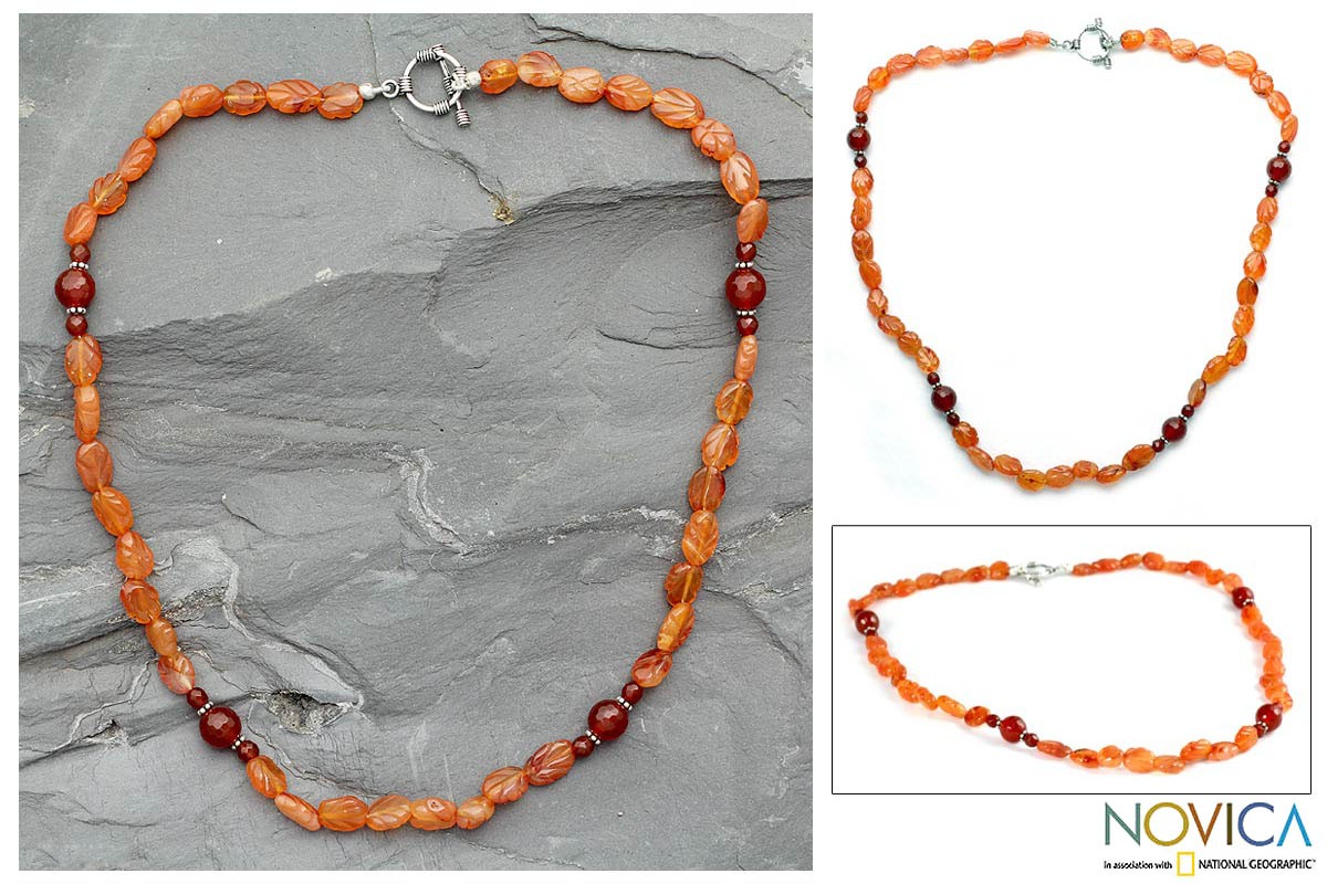Carnelian strand necklace, 'Rajasthan Summer'