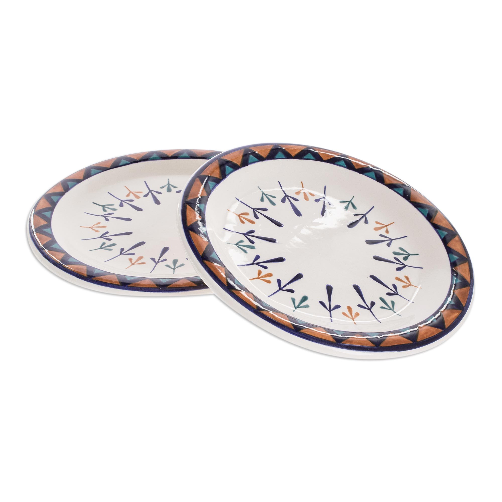 Nothing says "home" better than a hand-prepared meal served on delicately rustic plates. Crafted by ceramicist Lilyan Benecke of Guatemala, the set of two features a geometric and flora-inspired design in blue and orange on an off-white background.