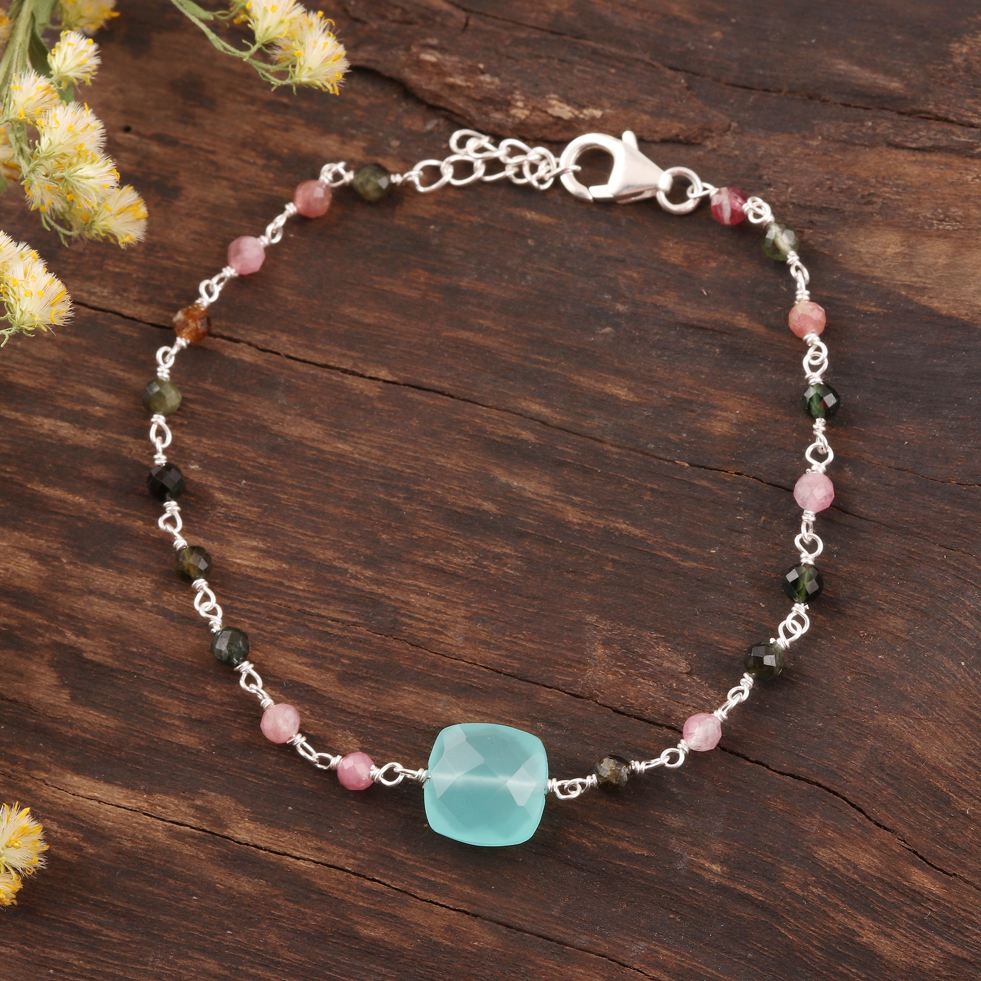 Chalcedony and Tourmaline Pendant Bracelet from India, 'Colorful Combo'