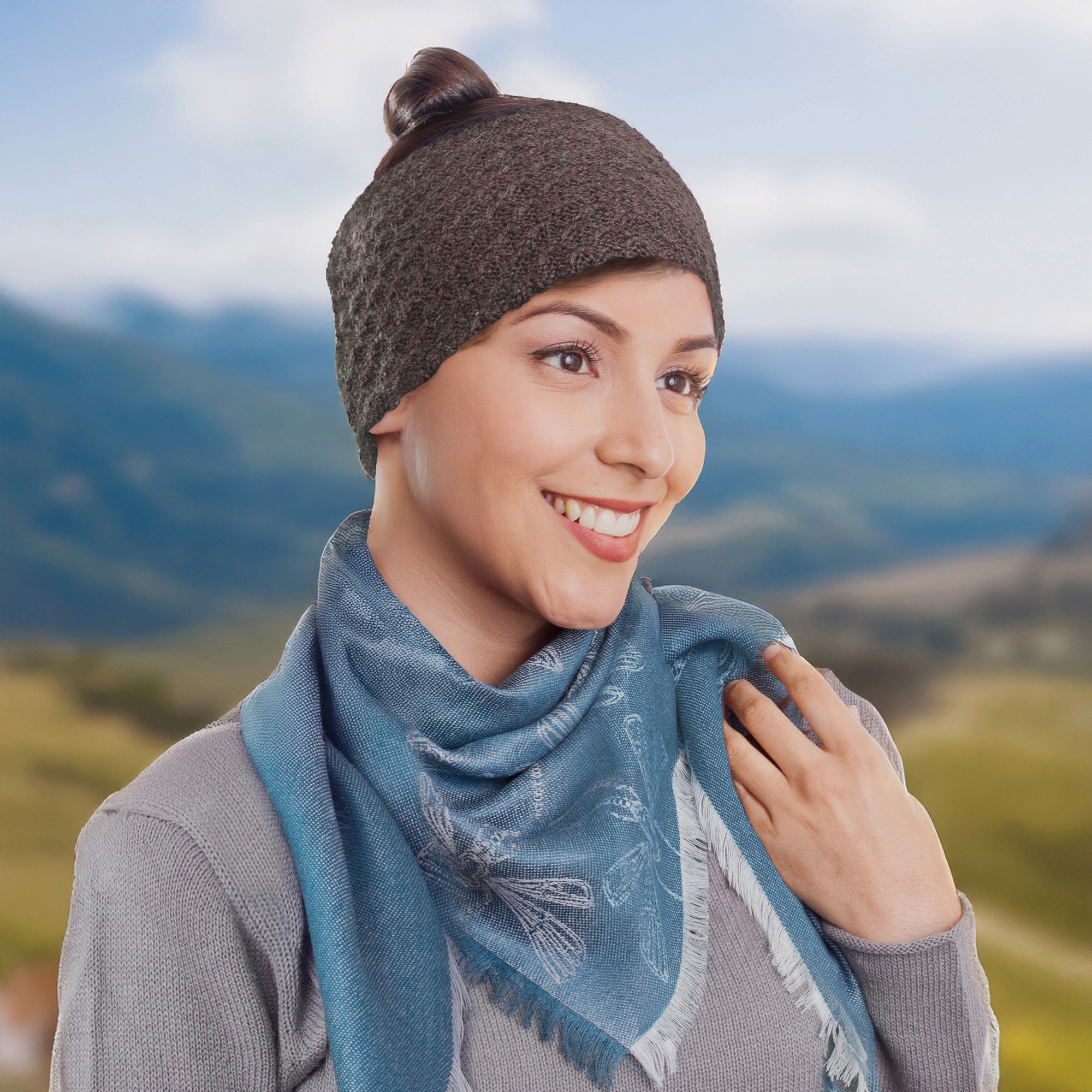 Alfredo Falcon of Peru designs a warm and cozy knit headband ear warmer made of 100% baby alpaca, the fine fleece from the first shearing of the season. In a lovely chestnut color, the headband features a honeycomb stitch pattern.