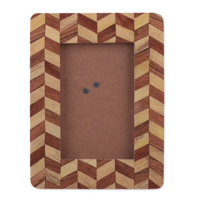 Chevron-Patterned Handmade 4x6 Wood and Glass Photo Frame, 'Chevron Times'