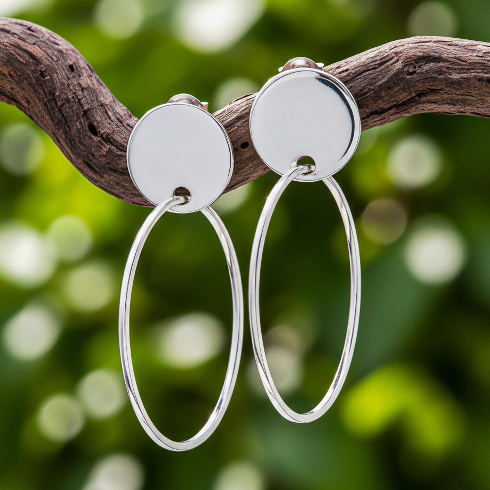 Circular Modern Sterling Silver Dangle Earrings, 'Moon Rings'