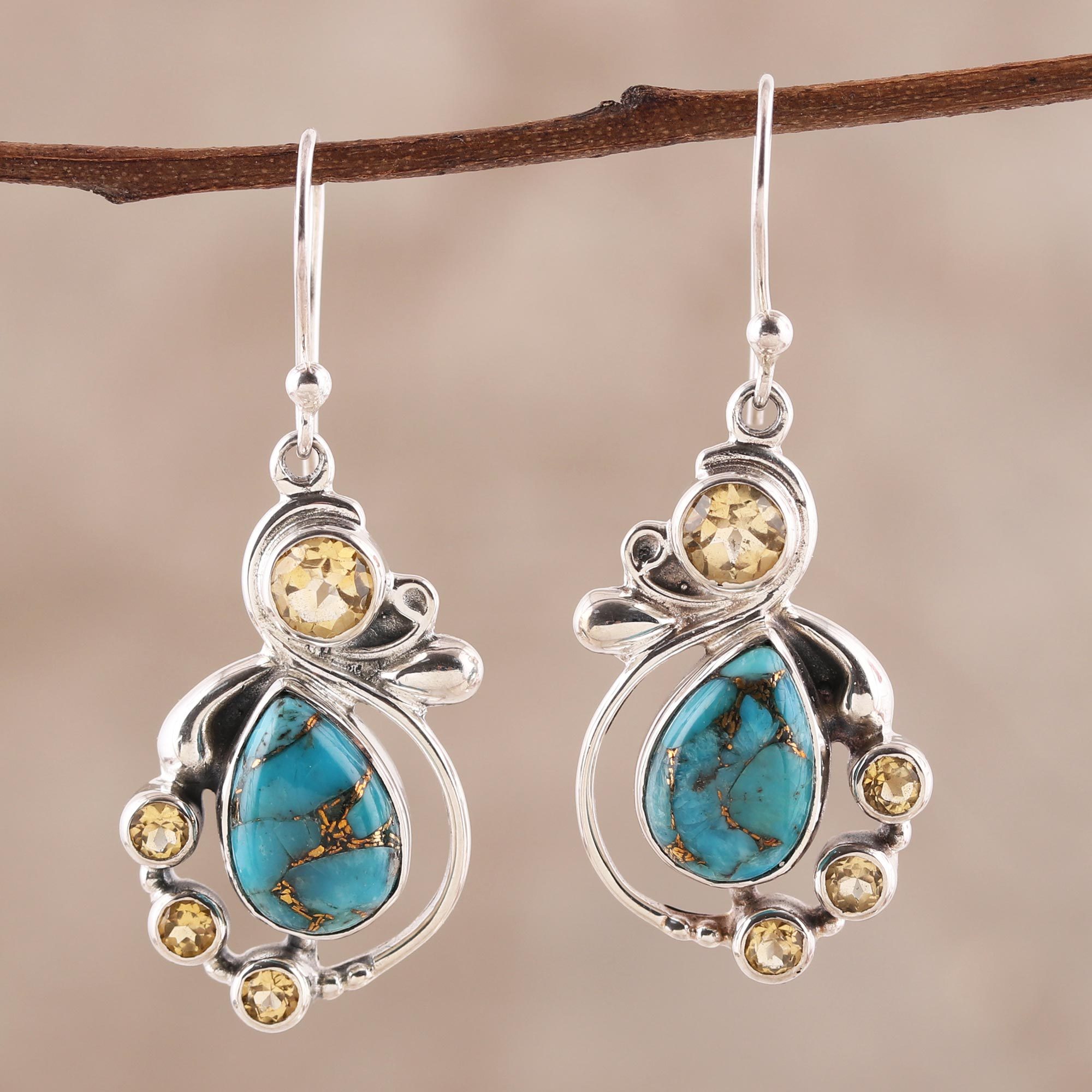 Citrine and Composite Turquoise Dangle Earrings from India, 'Exquisite'