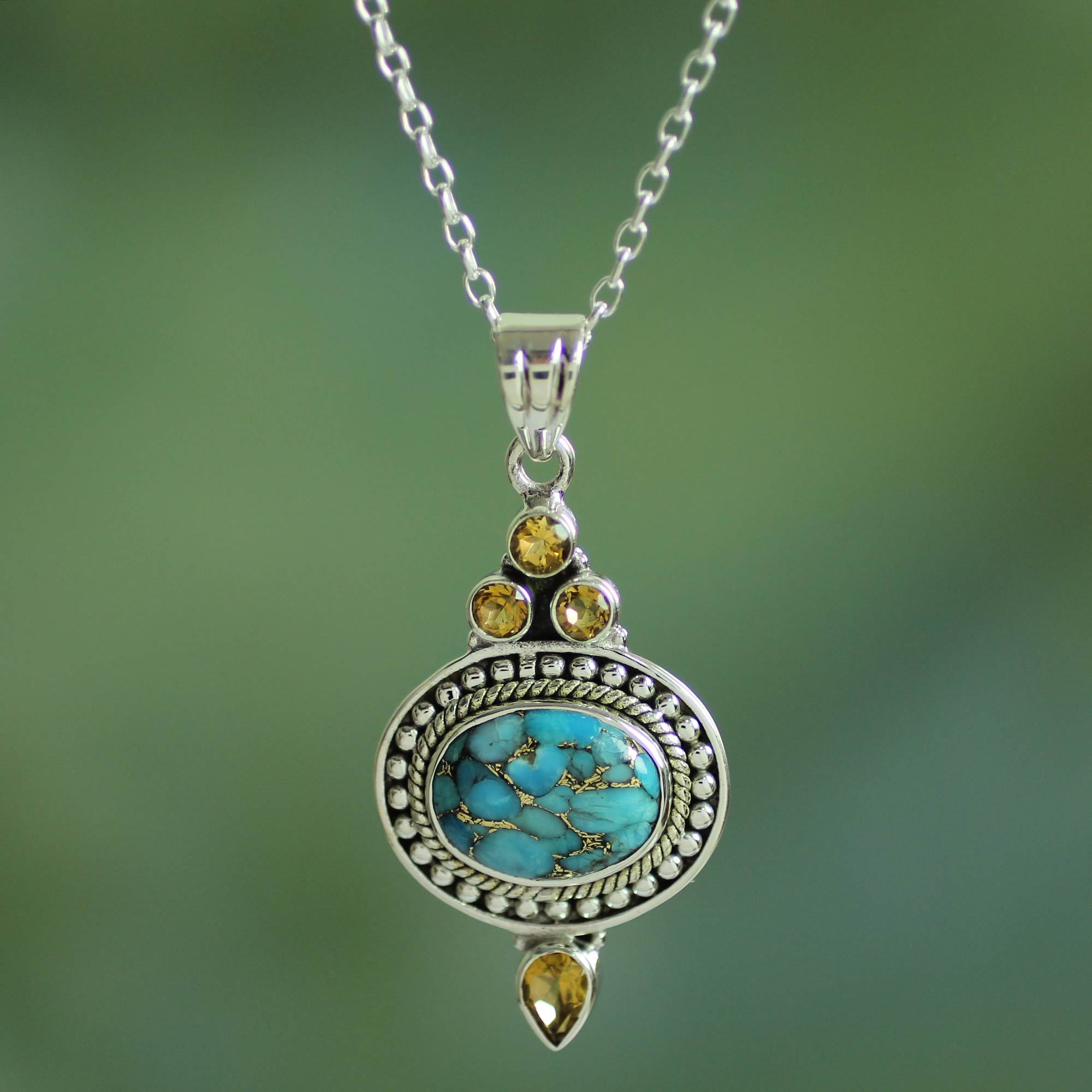 Citrine and Composite Turquoise Pendant Necklace, 'Luminous Blue Sky'