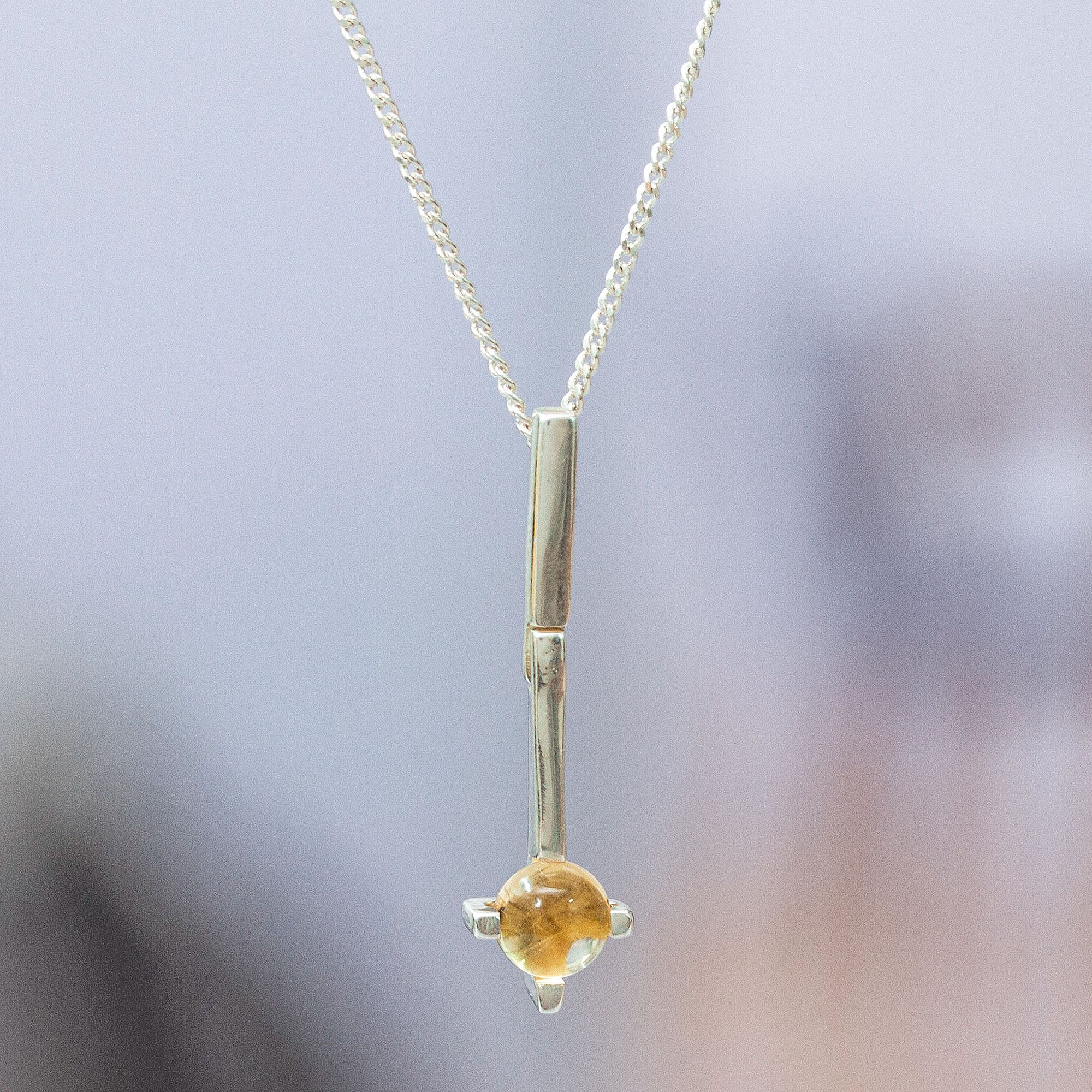 Citrine and Sterling Silver Pendant Necklace Made in Mexico, 'Joyous Future'