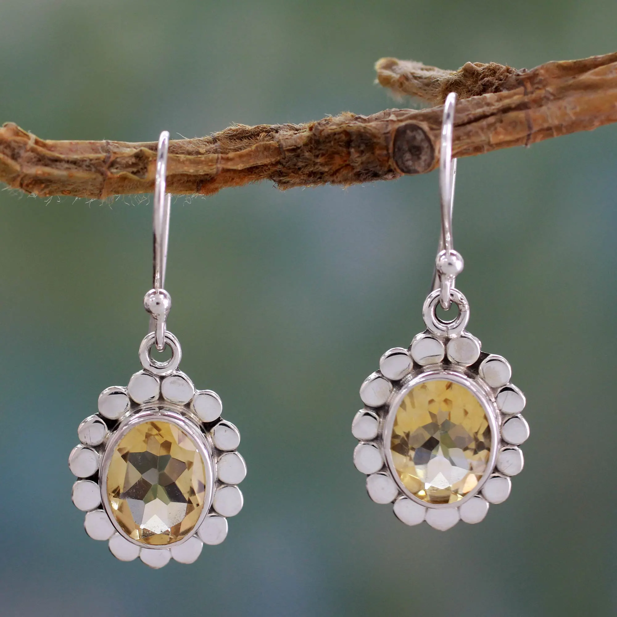 Surrounded by a halo of petals, sparkling gemstones are radiant. Neeru Goel designs exquisite earrings that set 2.5 citrine carats in sterling silver.