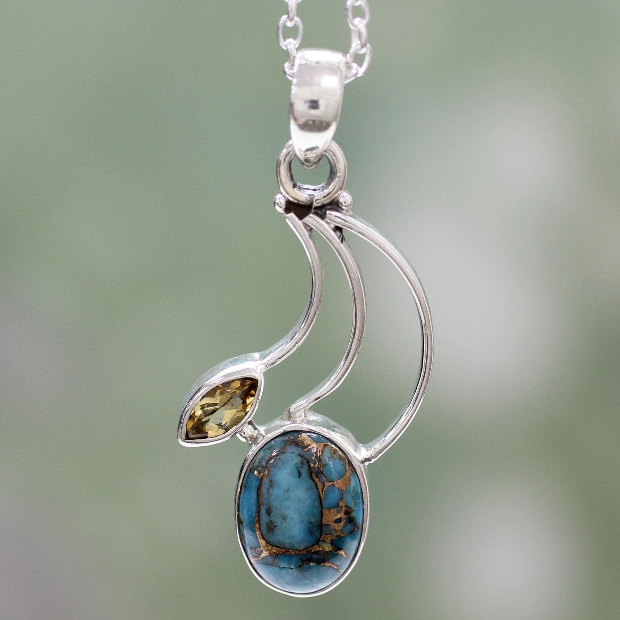 Citrine Silver Necklace with Composite Turquoise, 'Modern Mystique'