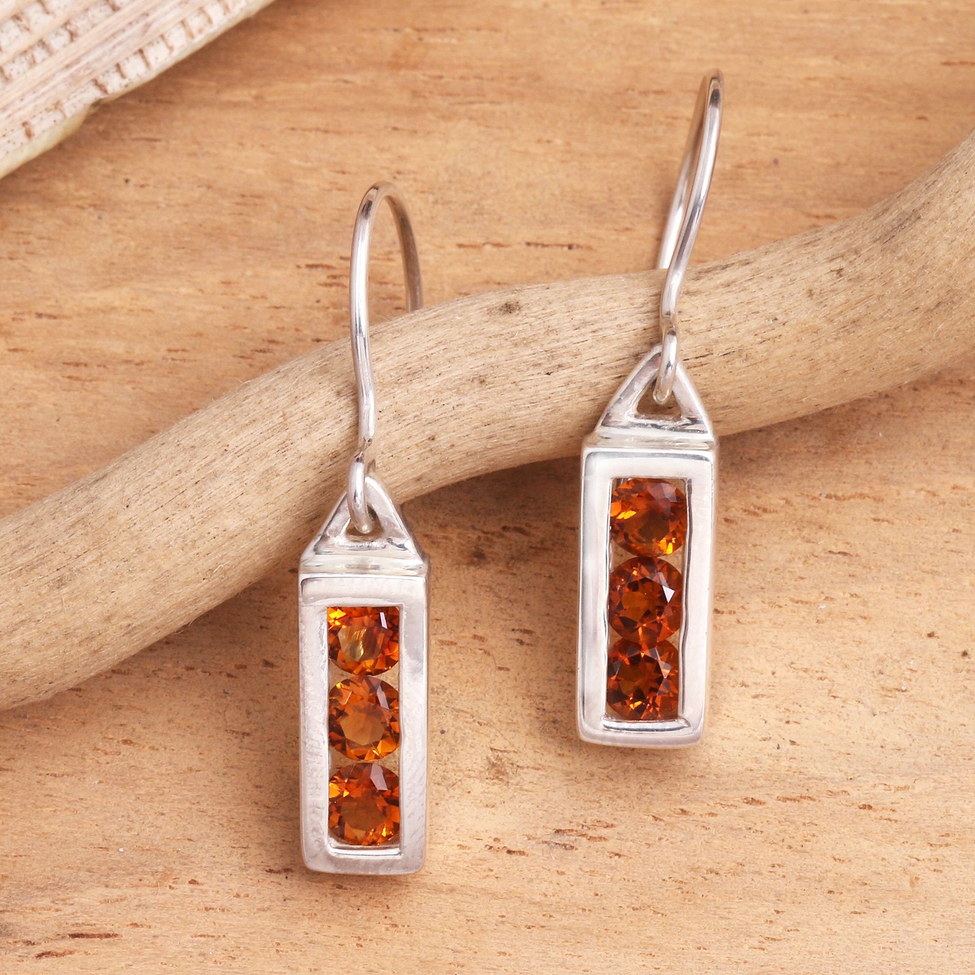 Encased in silver lanterns, faceted citrine emits a golden light. Artisans at the Mutiara Collection design modern earrings that exalt the beauty of both earth elements.