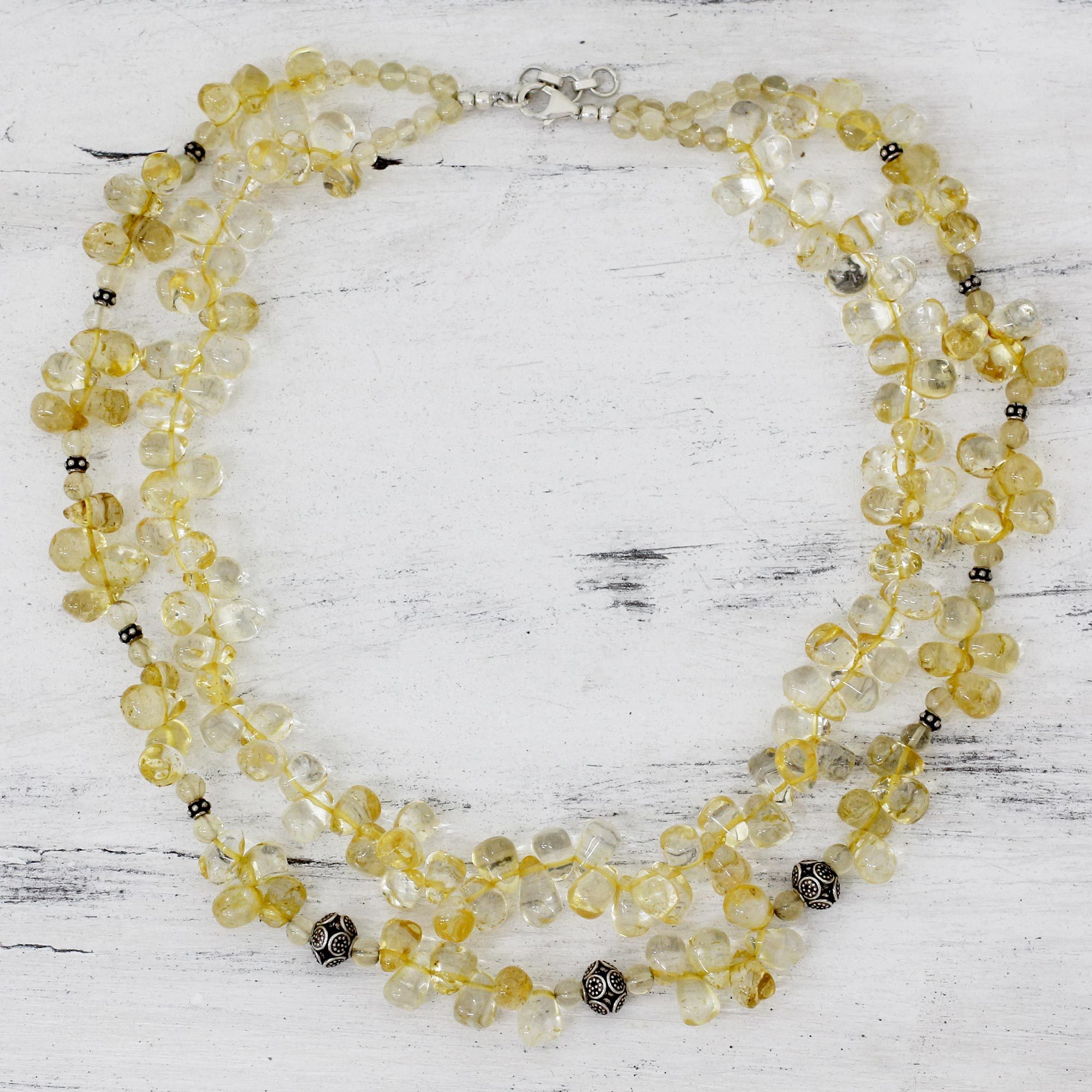 Golden droplets of sun dazzle in a two strand necklace by India's Narayannii. Regarded as the stone of the mind, citrine is said to bring clarity of thought. Florid sterling silver beads accentuate the outer strand in a design rich in Indian elegance.