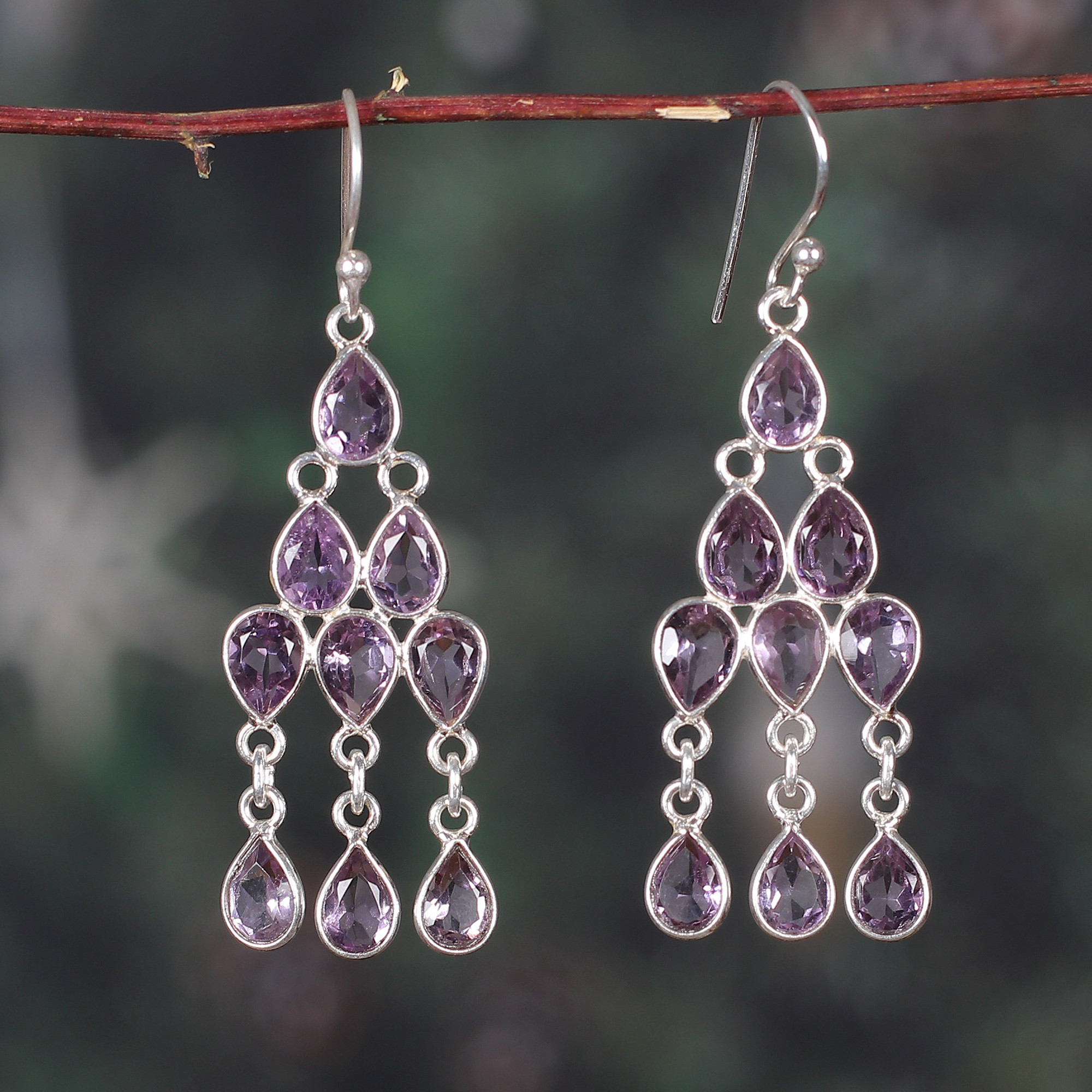 Classic 13-Carat Faceted Pear Amethyst Chandelier Earrings, 'Lavender Cascade'