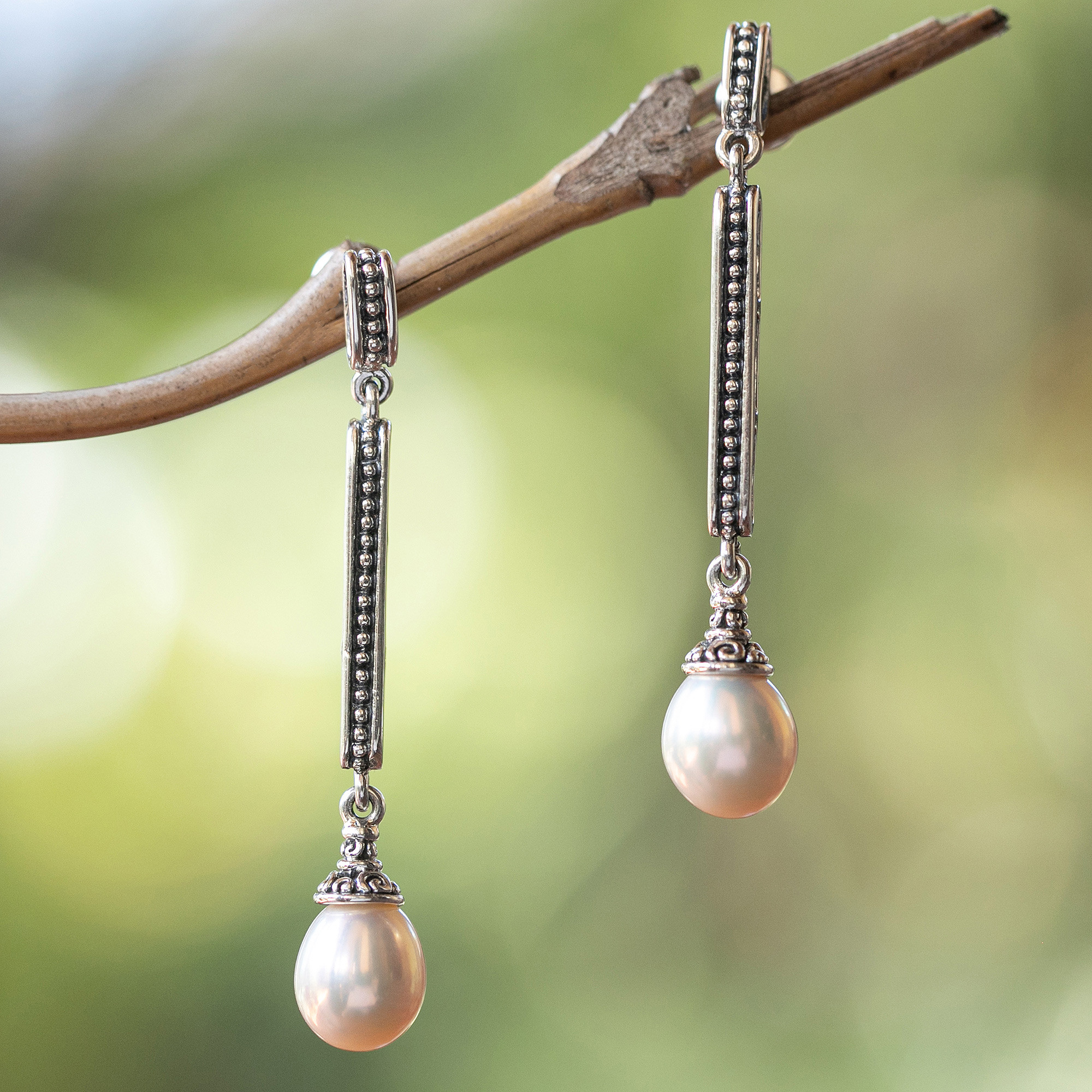 Classic Balinese-Made White Cultured Pearl Dangle Earrings, 'Royal Dew'