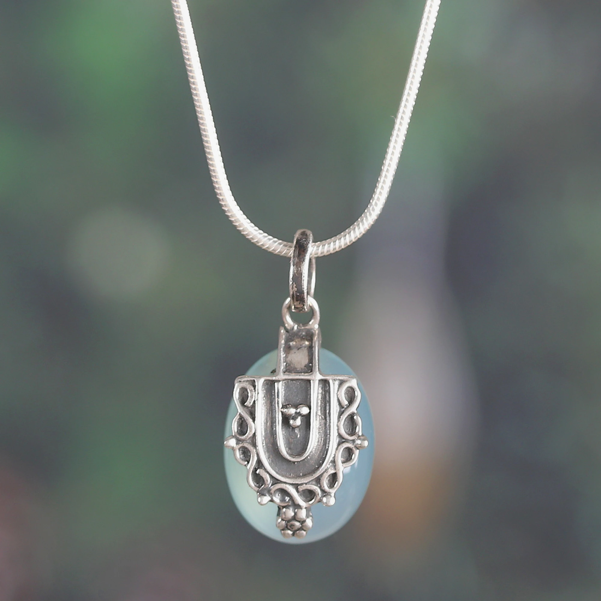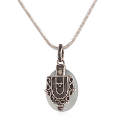 Classic Chalcedony Cabochon Pendant Necklace Made in India, 'Morning Dew'