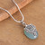Serene hues decorate Neeru Goel's necklace with a heavenly aura. This gorgeous sterling silver pendant necklace holds a precious chalcedony jewel with classic details in polished and oxidized finishes. The piece—made as a symbol of balance— completes its charming look with a dapper omega chain.