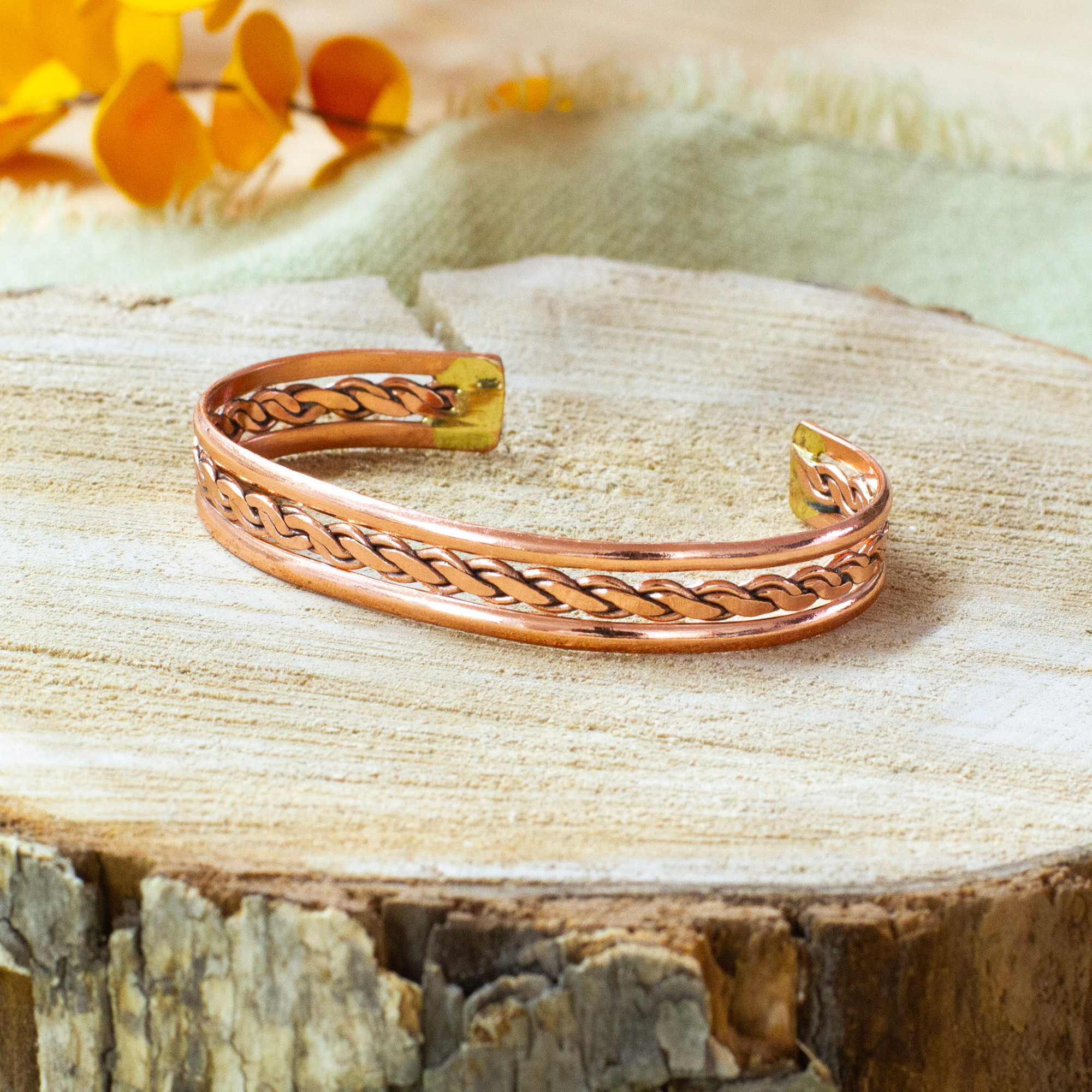 Elegant chains decorate this sublime bracelet with an aura of heroism and nobility, showcasing the glory of those with a noble heart. Artisans Rosy and Daniel from Mexico work with copper pieces to create this wondrous cuff of classic elegance, polished to shine with victorious light.