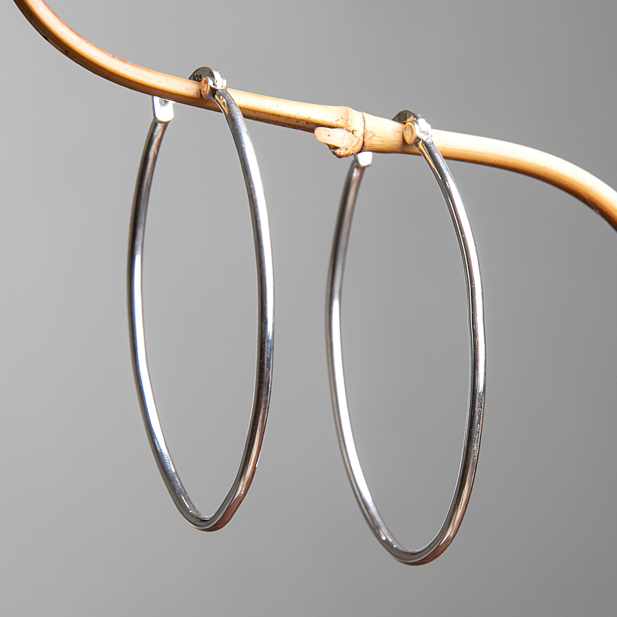 Sleek and sophisticated, these sterling silver hoops are the definition of understated cool. Designed by Balinese artisan Dhea Pramesthi, each elongated oval swings with graceful movement, catching the light with a combination finish that adds depth and dimension to the polished metal. They're the kind of earrings that work with everything in your wardrobe, from a crisp white tee to your favorite little black dress, bringing just the right amount of shine without trying too hard. Effortlessly chic and endlessly wearable, they're destined to become your new go-to pair.