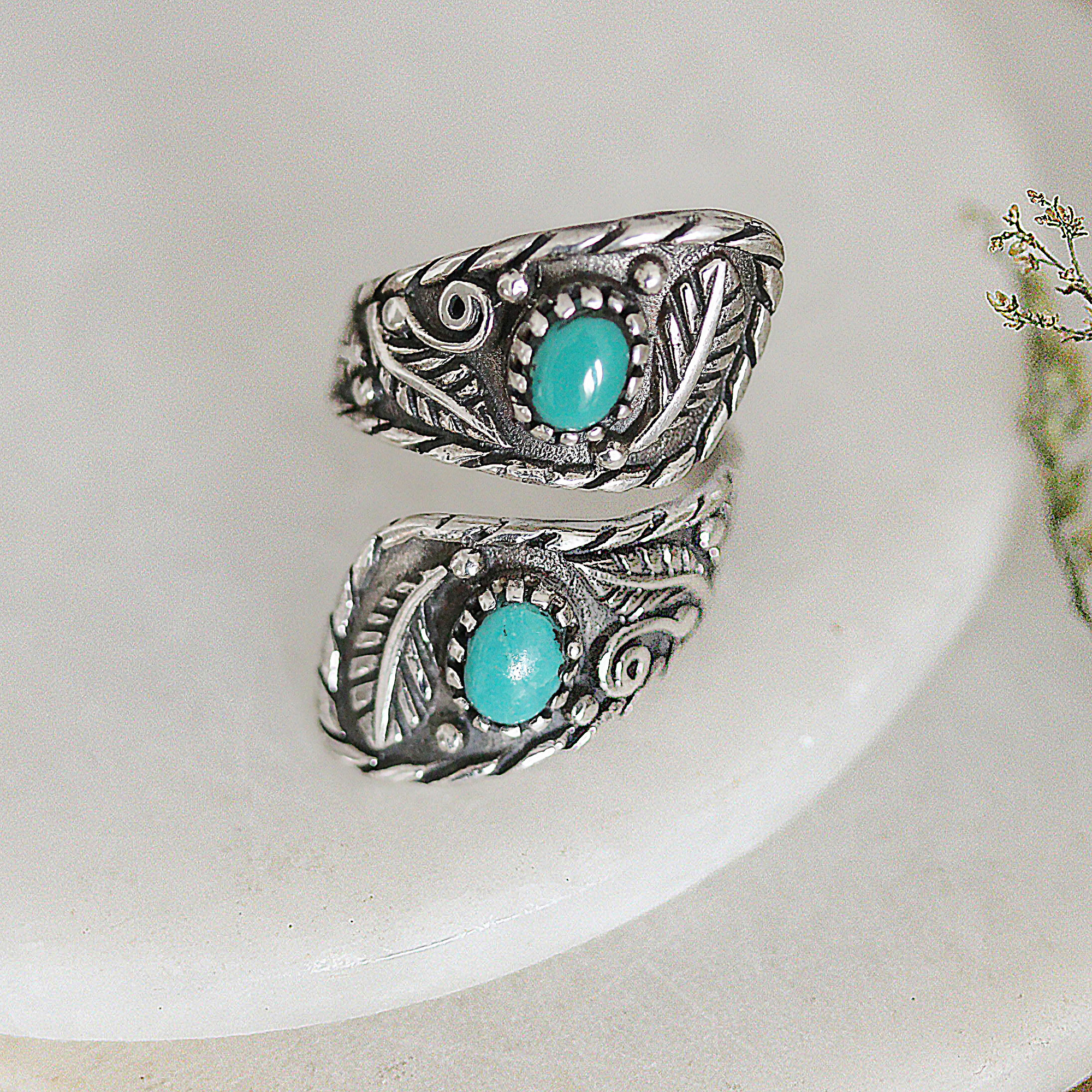 Classic Leafy and Floral Reconstituted Turquoise Wrap Ring, 'Call from Paradise'