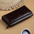 Good design doesn't need to announce itself. Indian artisan Suman creates this espresso-hued leather wallet that lets its smooth, polished surface and clean rectangular silhouette do all the talking, projecting a quiet confidence that never goes out of style. A snap button opens to a thoughtfully arranged interior: two compartments with four card slots at the center and a horizontal open pocket on each side, keeping everything exactly where you expect it to be. An exterior zippered back pocket rounds out the organization with the kind of effortless practicality that makes you wonder how you managed without it. Sleek, sophisticated and built to last, this is a wallet that earns its place in your everyday rotation and stays there.