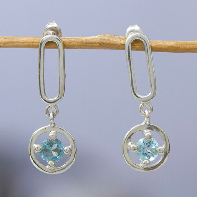 Classic Polished Sterling Silver and Topaz Dangle Earrings, 'Celestial Sparks'