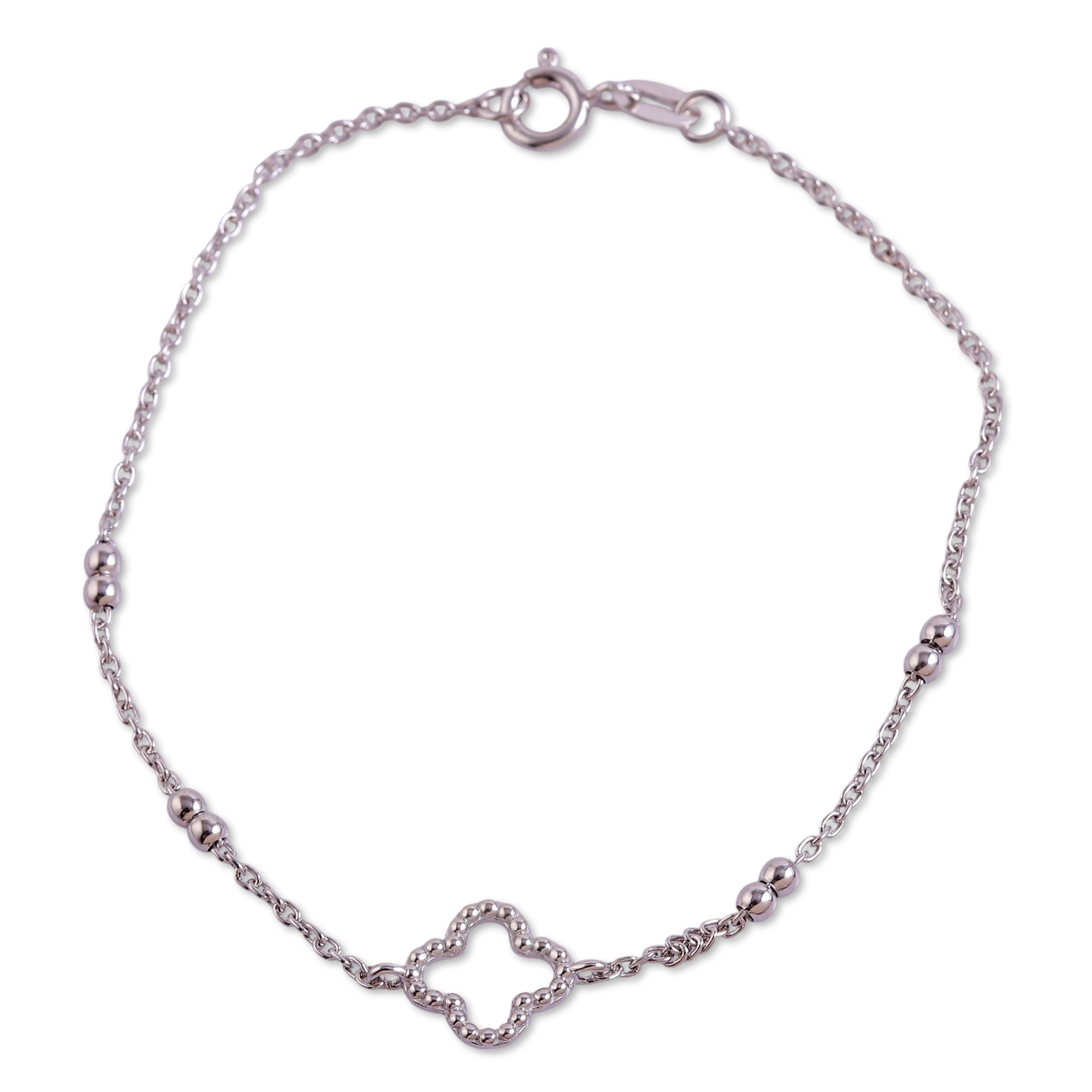 Hema's newest design takes you on an adventure of style and bright details. Made of sterling silver by master artisans of India, this bracelet decorates its trellis pendant with shiny orbs, each accented with a high-polish finish.
