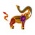 This alebrije elephant has news to share. Eugenia and Roberto Sosa handcraft this trumpeting elephant from copal wood with vibrant colors and a variety of detailed motifs. They capture the energy of his big announcement with trunk raised to the sky and ears and tail held aloft. Alebrijes, a Mexican folk art popularized in Oaxaca, are detailed, colorful, and fantastical wood carvings.