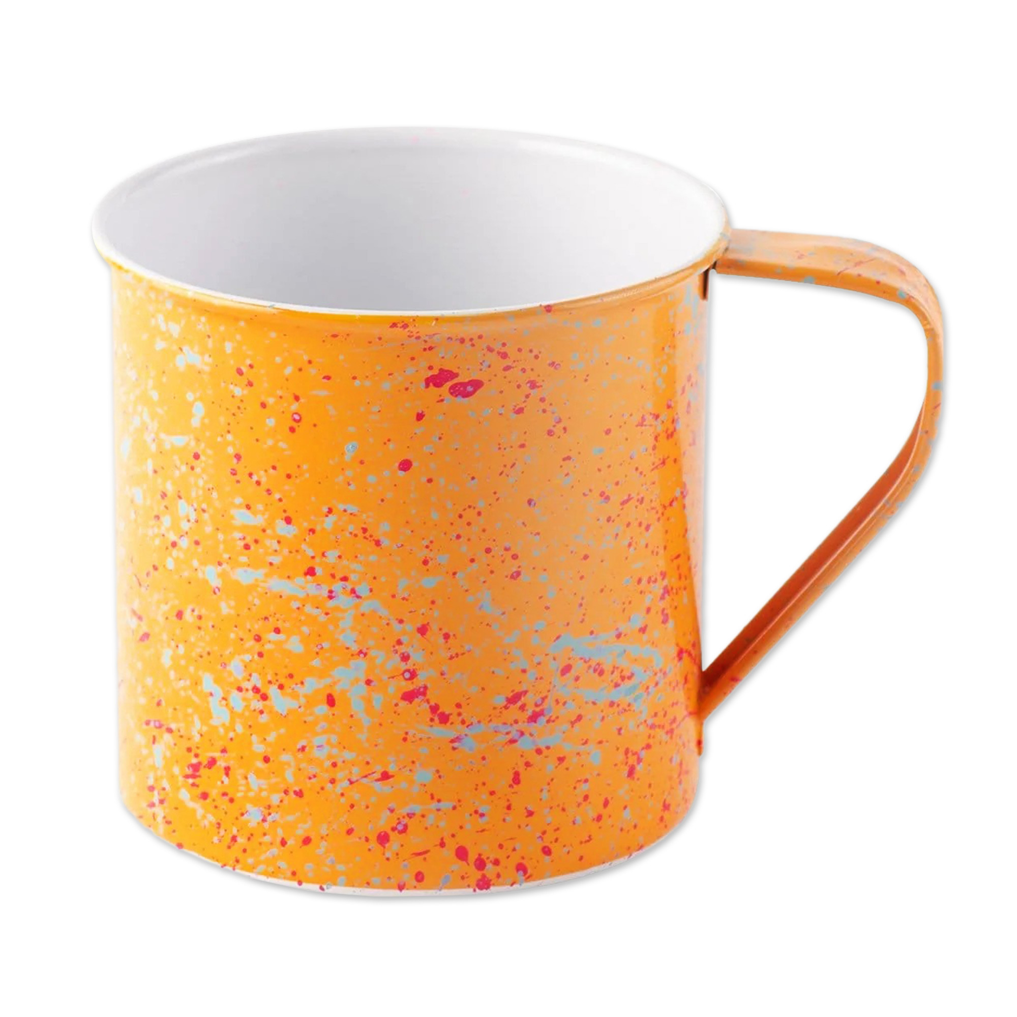 Colorful Handpainted Stainless Steel and Enamel Mug, 'Apricot Splatter'