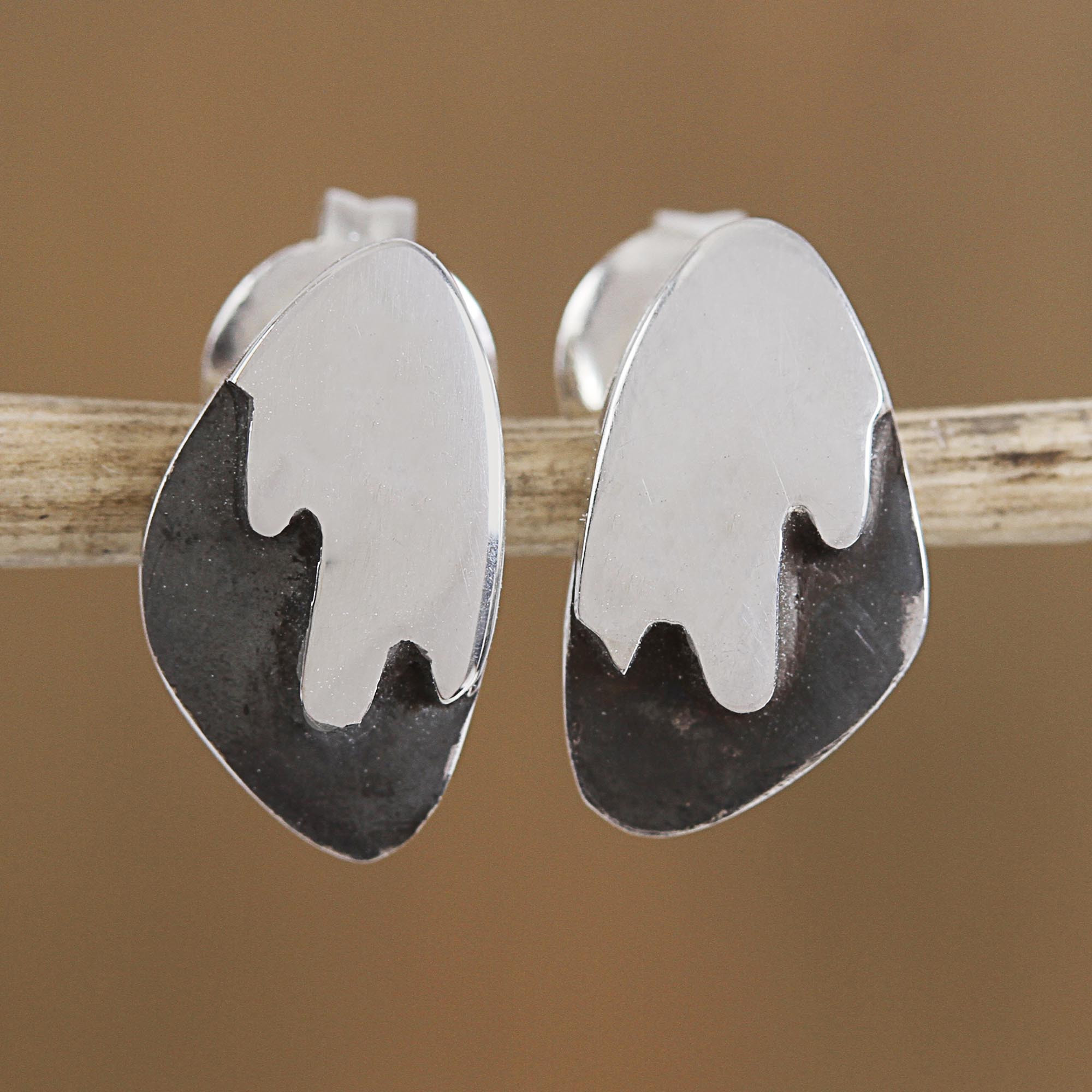 Combination Finish Sterling Silver Stud Earrings from Mexico, 'Mountain Summits'