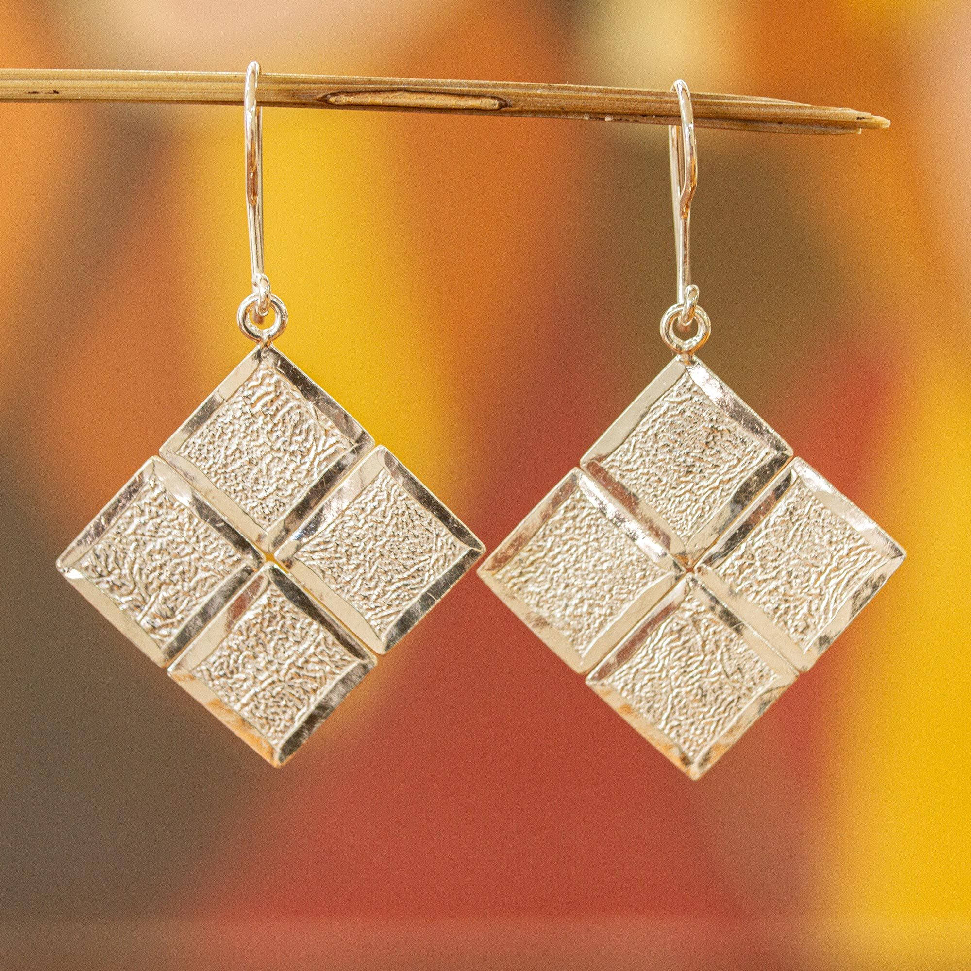 Divided into four quadrants, dancing diamonds reveal intricate textures. Maria Belen Nilson transforms precious Taxco sterling silver into beautifully contemporary earrings.
