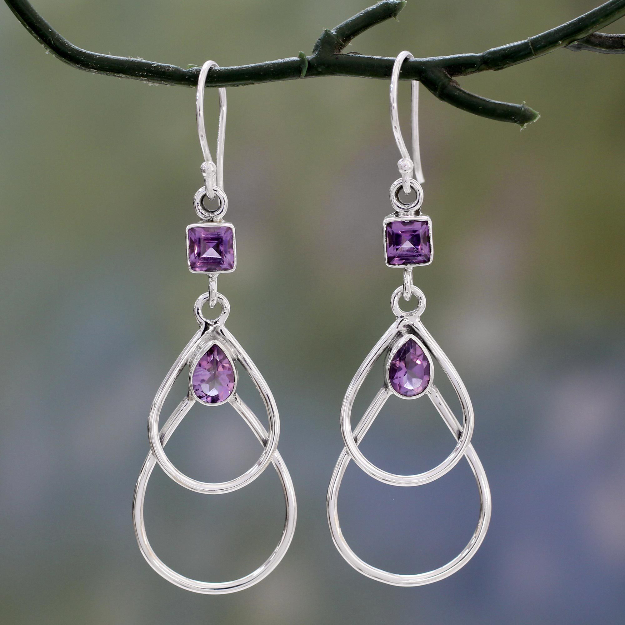 Sterling silver offsets amethyst's cool sparkle in the exclusive design of these earrings. From Bhavesh, this spectacular design fuses the allure of India's classic elegance with modern vogue.