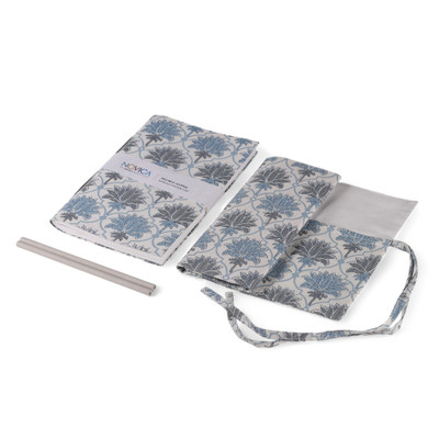 Nurture your mind and soul with this wellness journal set that includes a journal, a practical roll pencil case and two eco-friendly pencils, perfect for mindful writing. Designed by Aishwarya Jhawar, the journal is covered in cotton, boasting hand-block printed lotus flower and lattice-style trellis motifs in cerulean and stone over a white background, evoking a sense of serenity and paying homage to traditional Indian textile artistry. The cotton roll pencil case duplicates the journal's patterns and features a tie closure and a fully lined interior that hosts pencils, pens and other small accessories. The set is complete with two pencils handmade from recycled paper, adding sustainable charm.