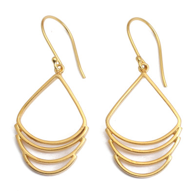 Crescent-Inspired Modern Gold-Plated Brass Dangle Earrings, 'Layered Crescent'