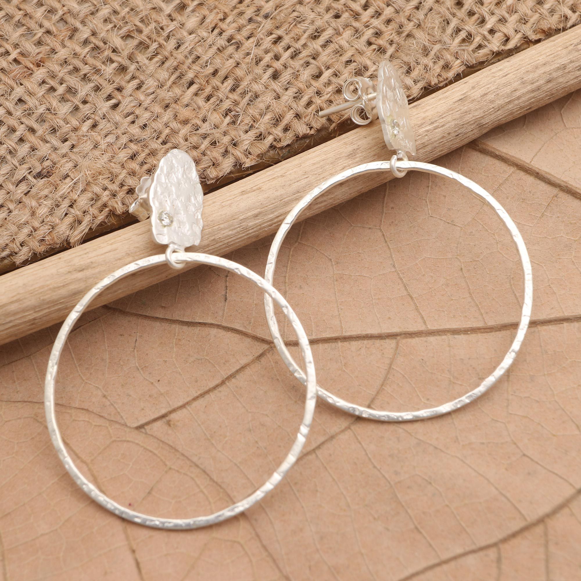 Made Sri's beautiful silver earrings will give you a reason to sparkle. The Balinese artisan crafts the earrings from a narrow hoop of sterling silver in a subtle hammered finish, while a petite cubic zirconia gem accents the pair's posts.