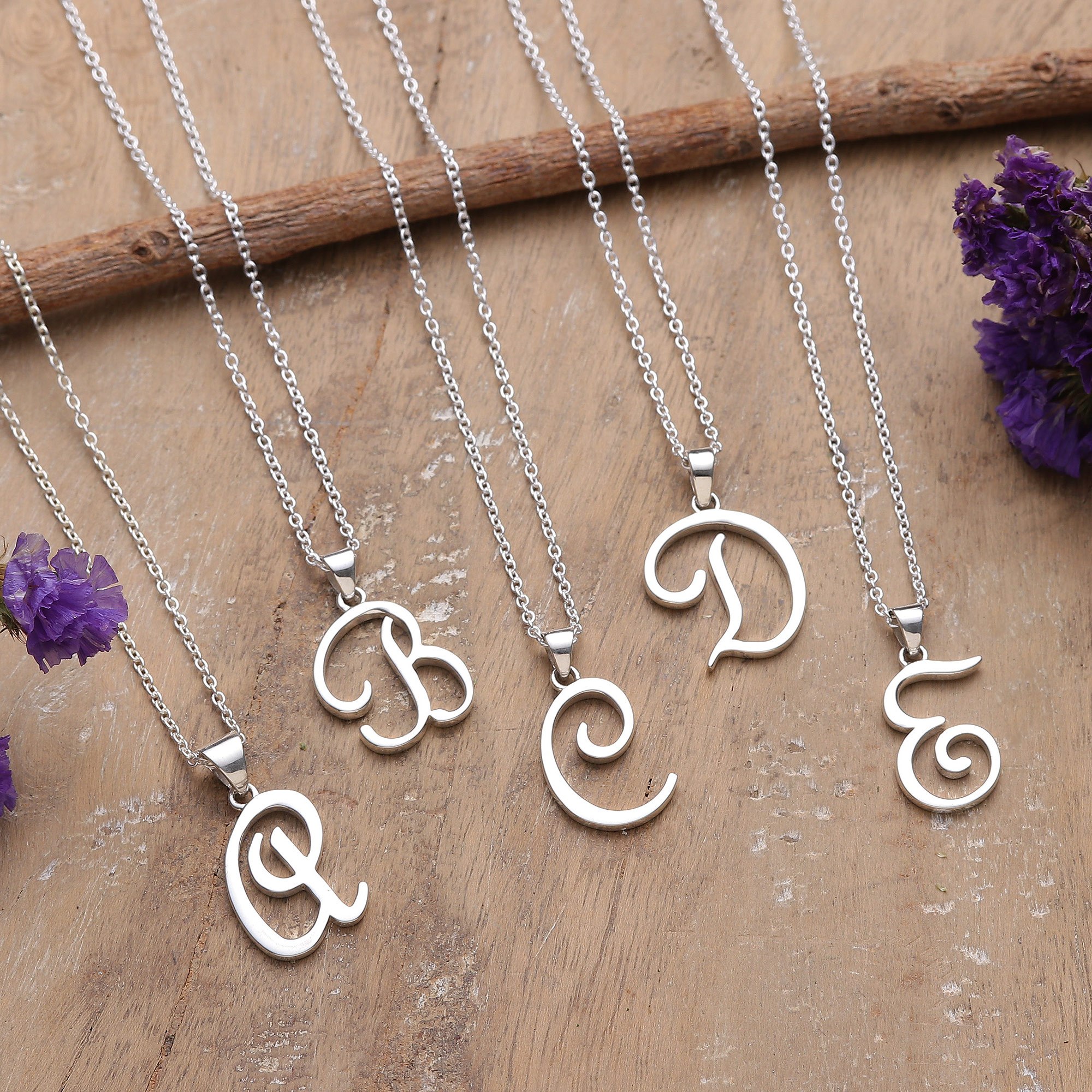 Cursive Letter-Shaped Sterling Silver Pendant Necklace, 'Dancing Letters'