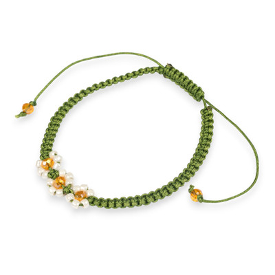 Daisy-Inspired Green Macrame Bracelet with Crystal Beads, 'Daisy Promise'