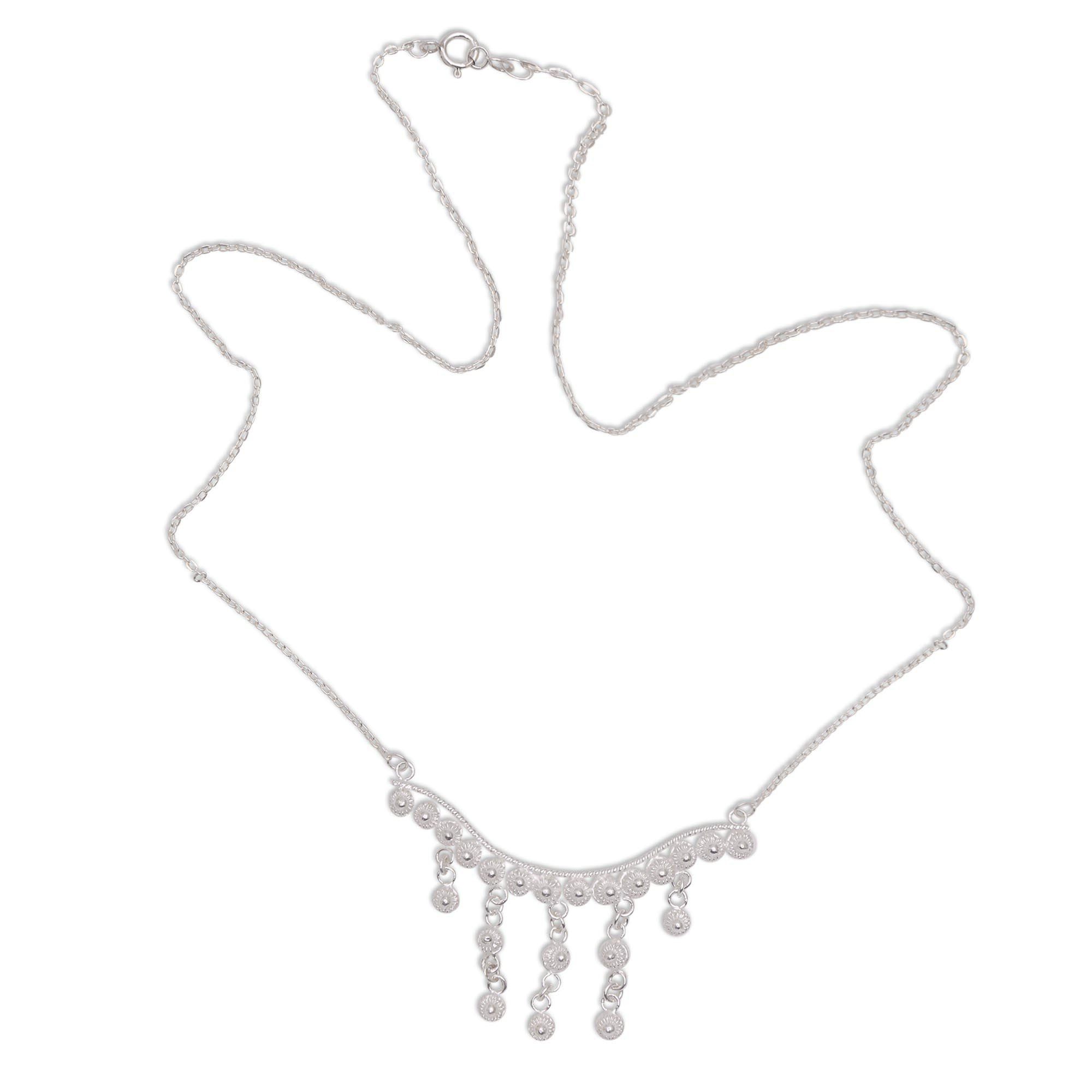 Known as jejer lengkung, the pendant of this necklace is handcrafted with sterling silver stars that form a wavy shape, from which dangle other glistening stars. Javanese artisan Selly Sagita designs this pendant necklace, which draws inspiration from stupa, the dome-shaped Buddhist shrines of Indonesia.