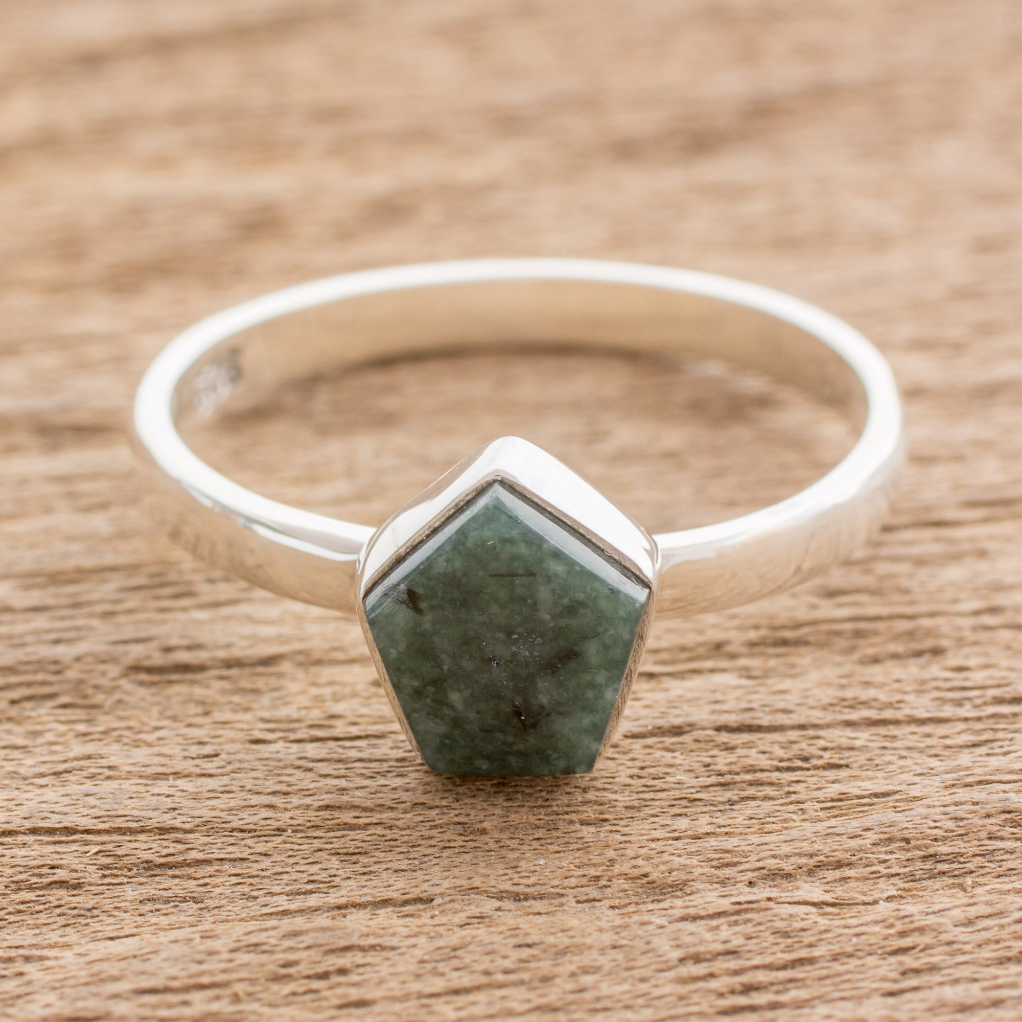 Dark Green Jade Pentagon and Sterling Silver Cocktail Ring, 'Striking in Dark Green'