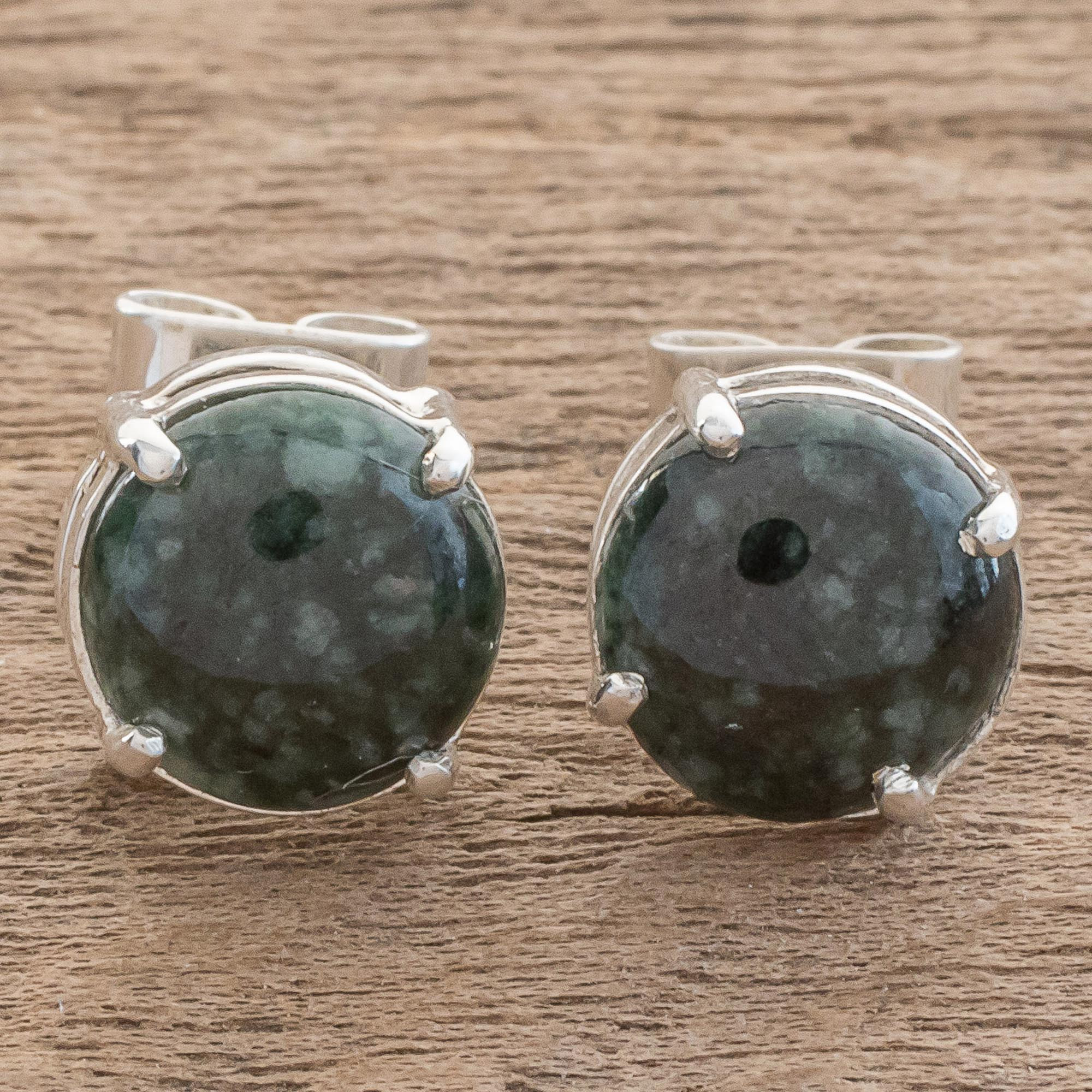 Dark Green Jade Stud Earrings Crafted in Guatemala, 'Maya Sweets in Dark Green'