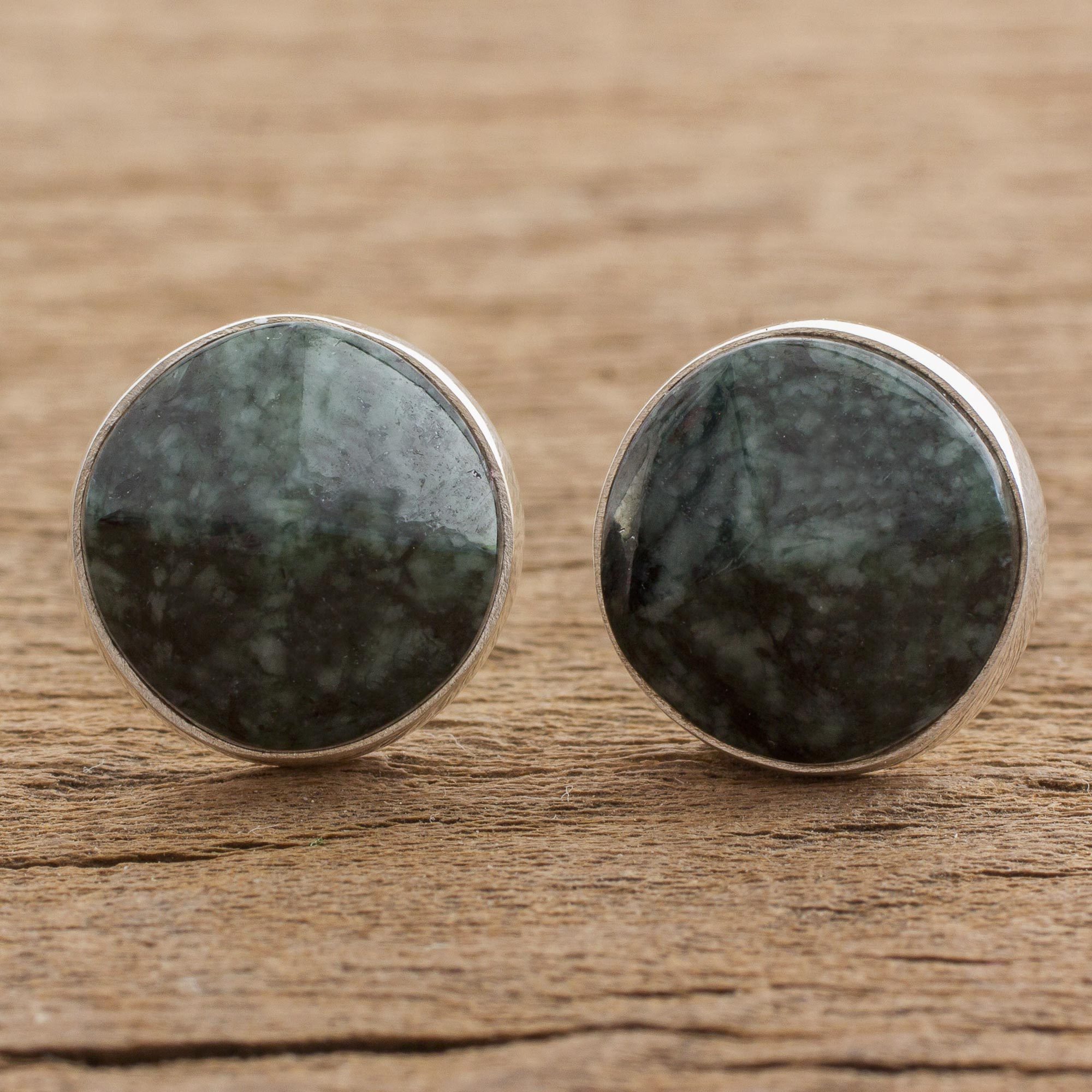 Dark Green Jade Stud Earrings from Guatemala, 'Dark Green Faceted Circles'