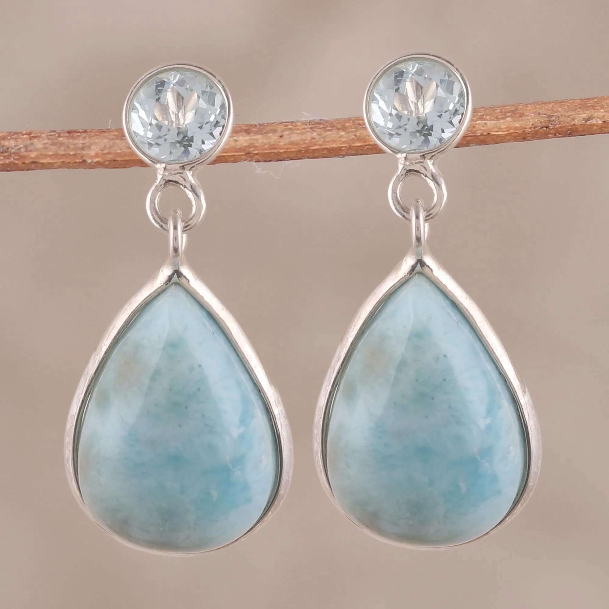 Dazzling Larimar and Blue Topaz Dangle Earrings from India, 'Alluring Sky'