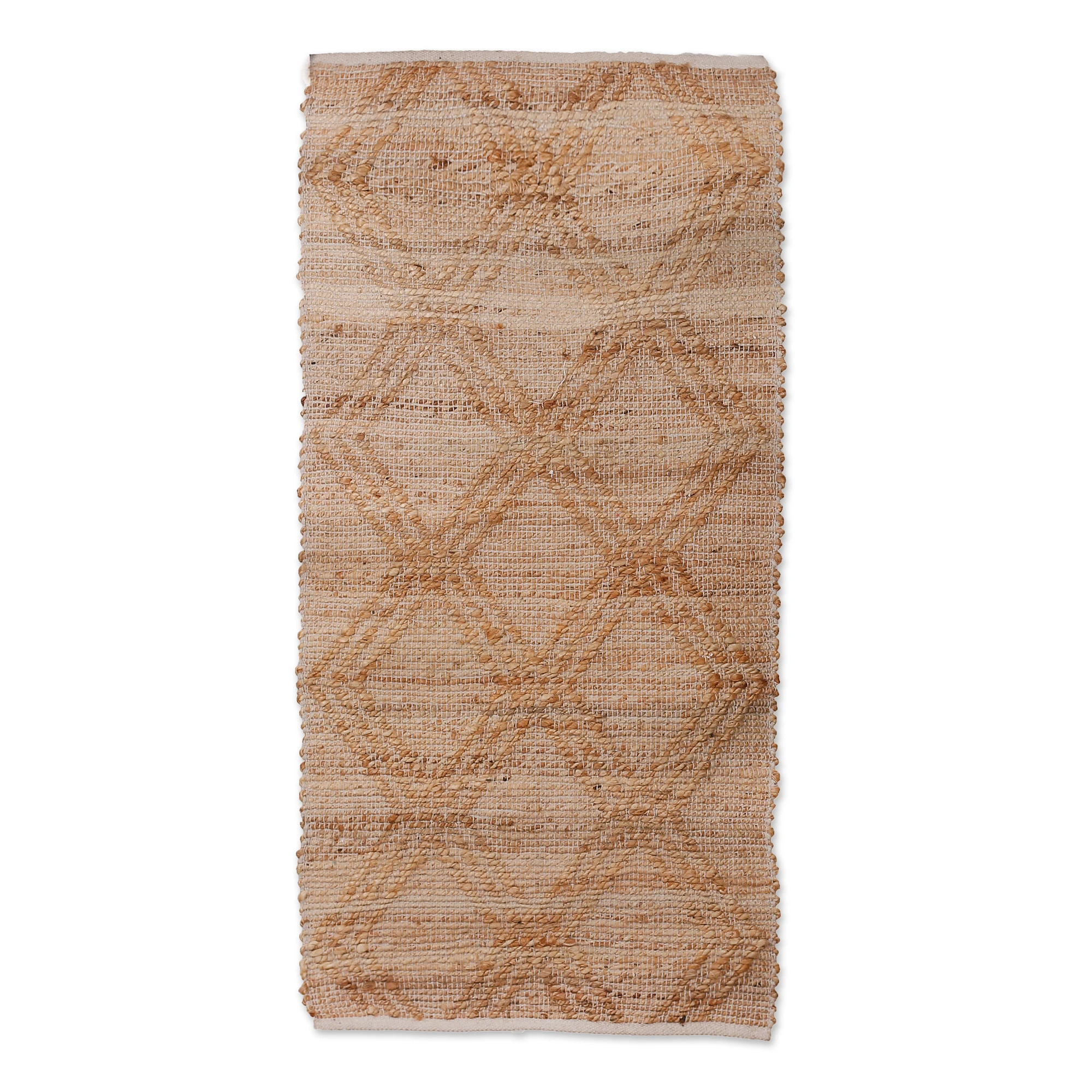Diamond-Patterned Handwoven Cotton and Jute Area Rug (2x4), 'Bohemian Class'