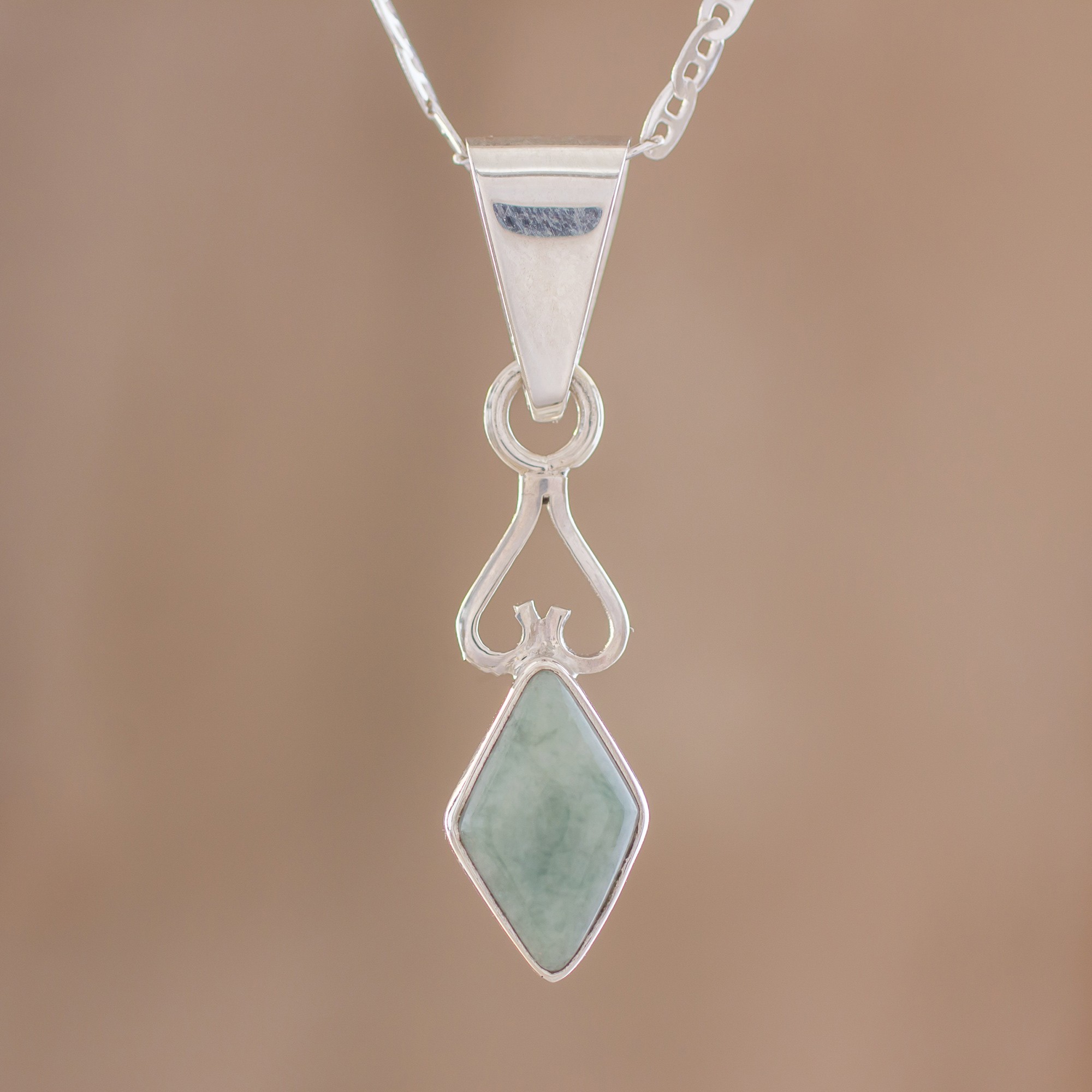 Diamond-Shaped Apple Green Jade Pendant Necklace Guatemala, 'Marvelous Apple Green Diamond'