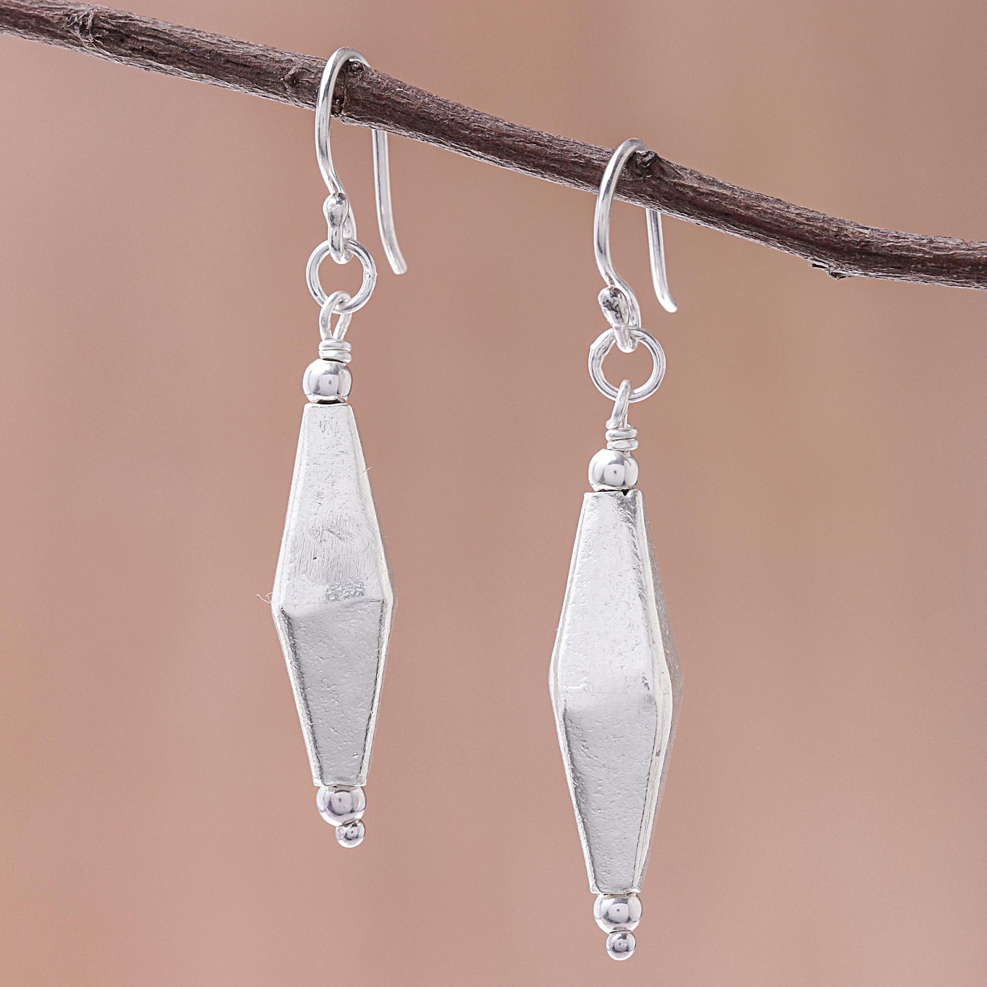 Diamond-Shaped Sterling Silver Dangle Earrings, 'Thai Diamonds'