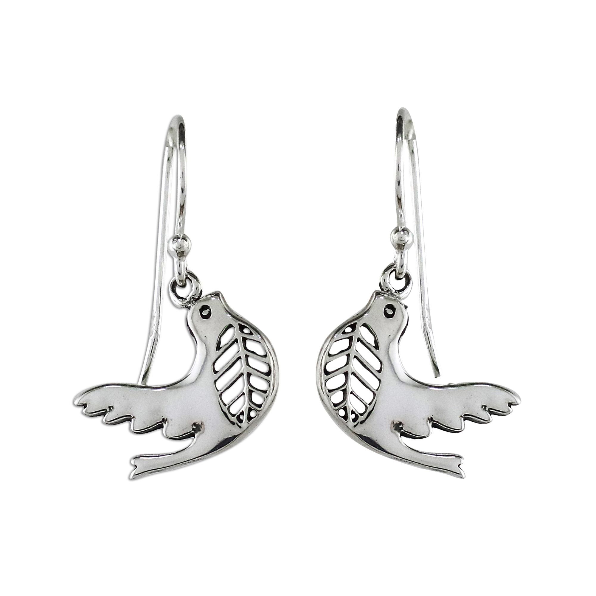 Dove-Shaped Sterling Silver Dangle Earrings from Thailand, 'Free Doves'