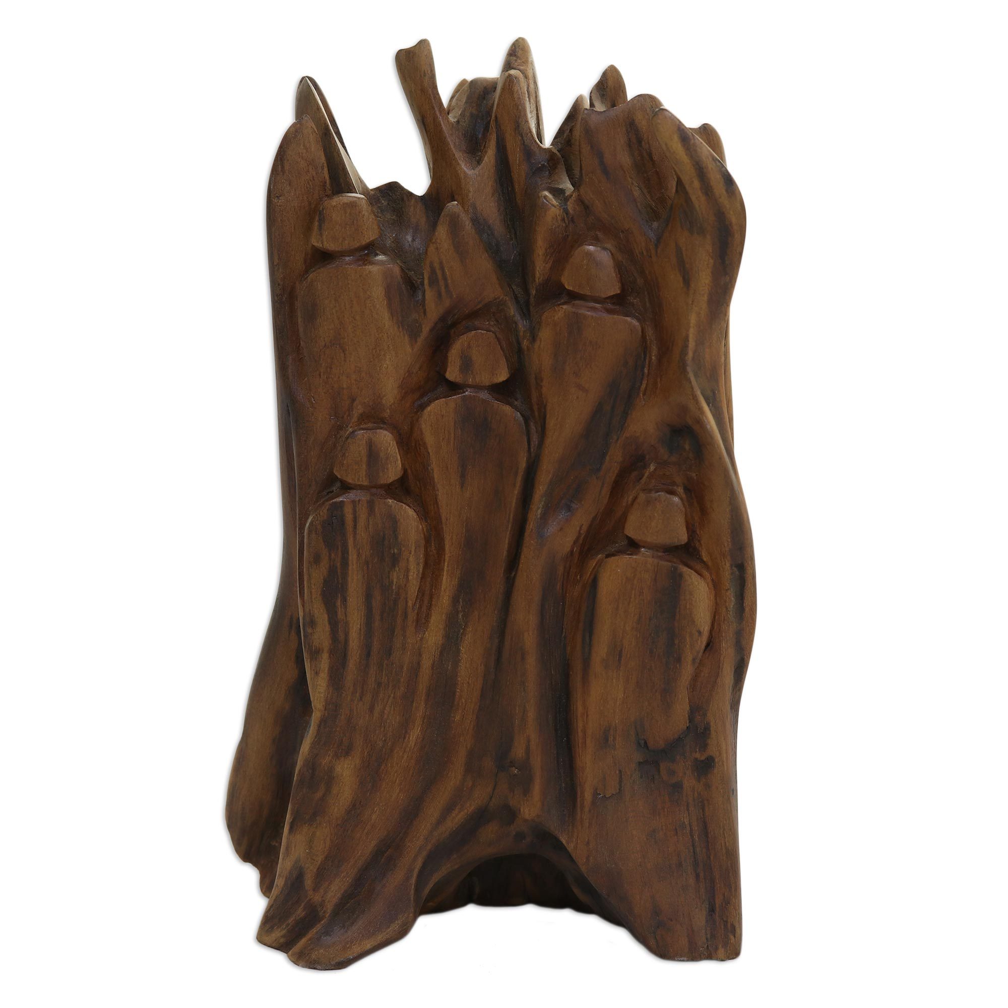 Reminiscing over his childhood fantasies, Indian artist Suresh Pant carves a nostalgic sculpture from a piece of sal driftwood. He allows the wood to display its natural shape, carving it with the image of five friends that venture into the woods together where they share many childhood memories. Suresh collects pieces of driftwood from the river near his home for all of his pieces, making this sculpture an eco-friendly addition to your home decor.