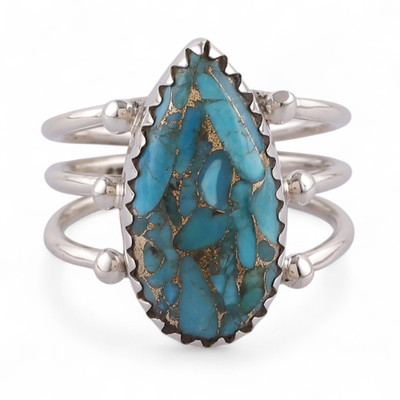 Drop-Shaped Reconstituted Turquoise Cocktail Ring from India, 'Lagoon Empress'