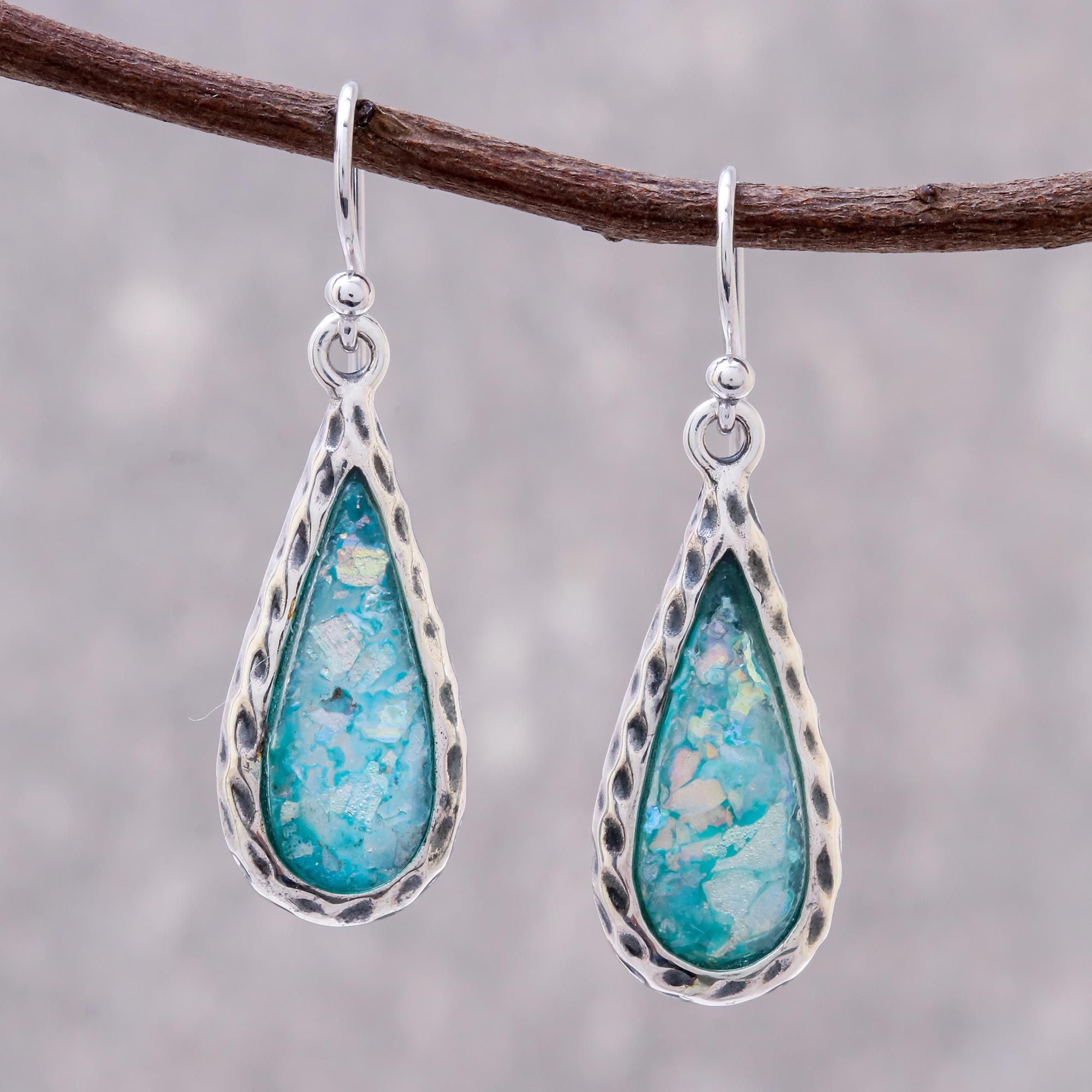 Drop-Shaped Roman Glass Dangle Earrings from Thailand, 'Roman Drops'
