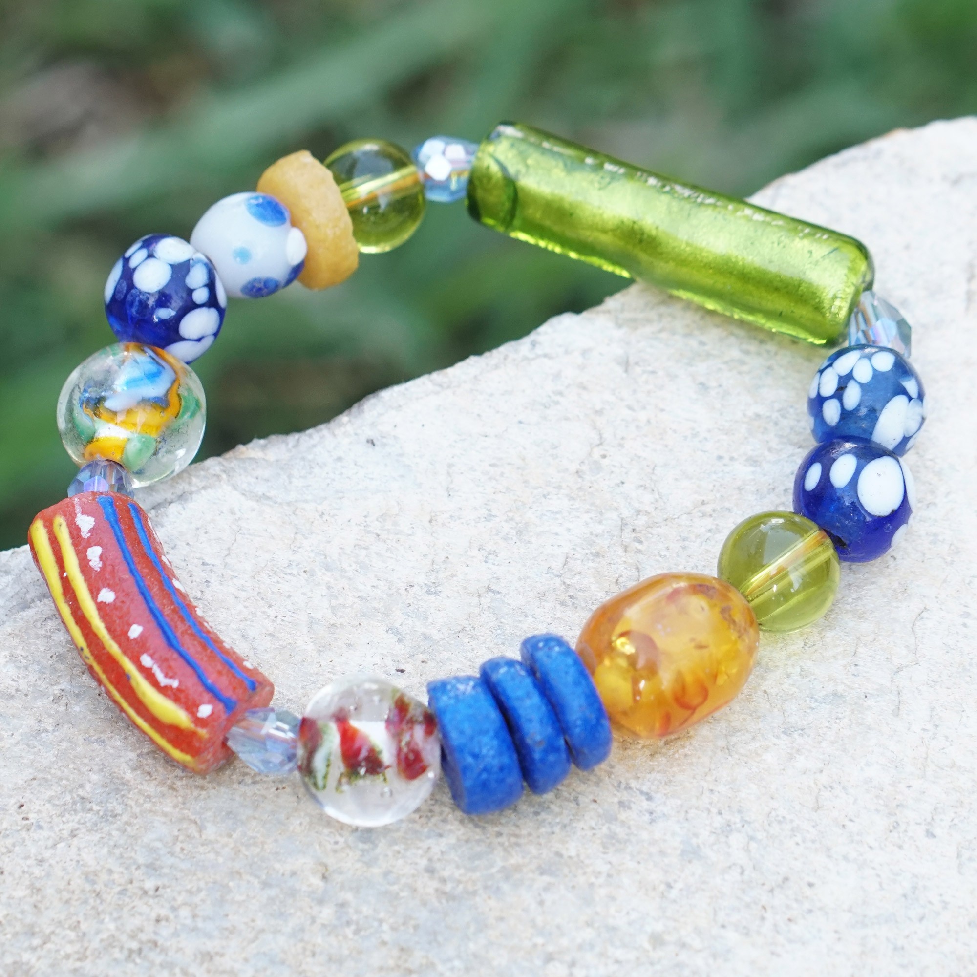 Eco-Friendly Colorful Glass and Plastic Beaded Bracelet, 'Surprise Shades'