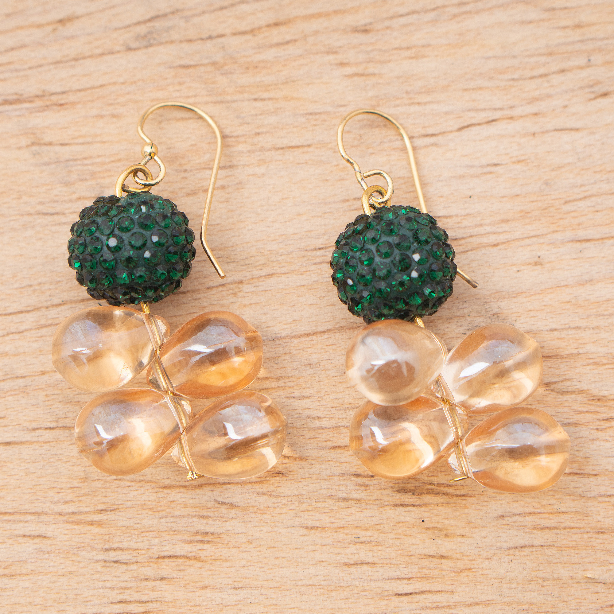 Eco-Friendly Recycled Glass Beaded Cluster Earrings in Green, 'Emerald Sun Pearl'